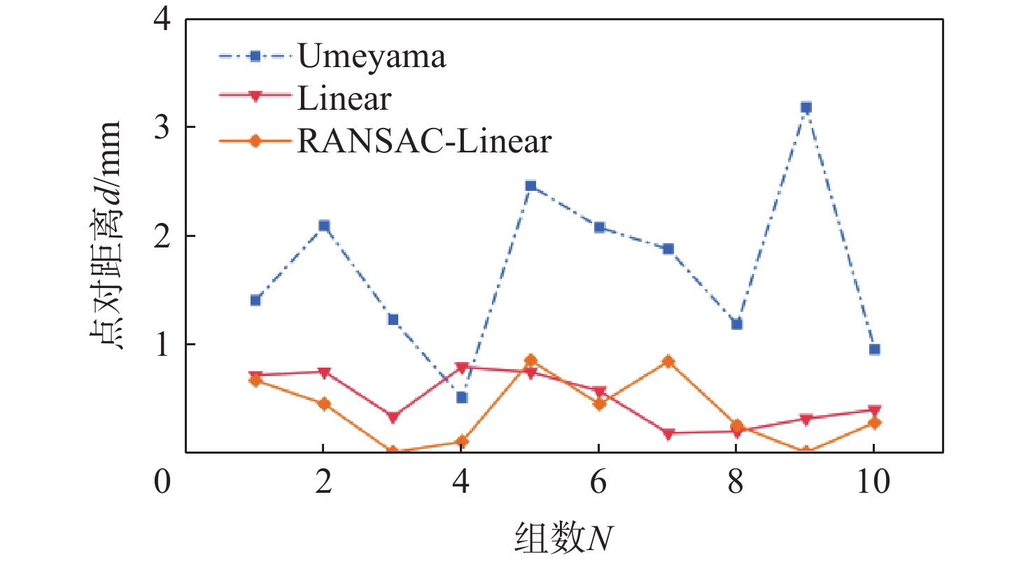 mm 算法 均值 标准差 方差 Umeyama 1.694 0.868 0.754 Linear 0.496 0.478 0.229 RANSAC- Linear 0.387 0.550 0.303 表 4 入位误差测量