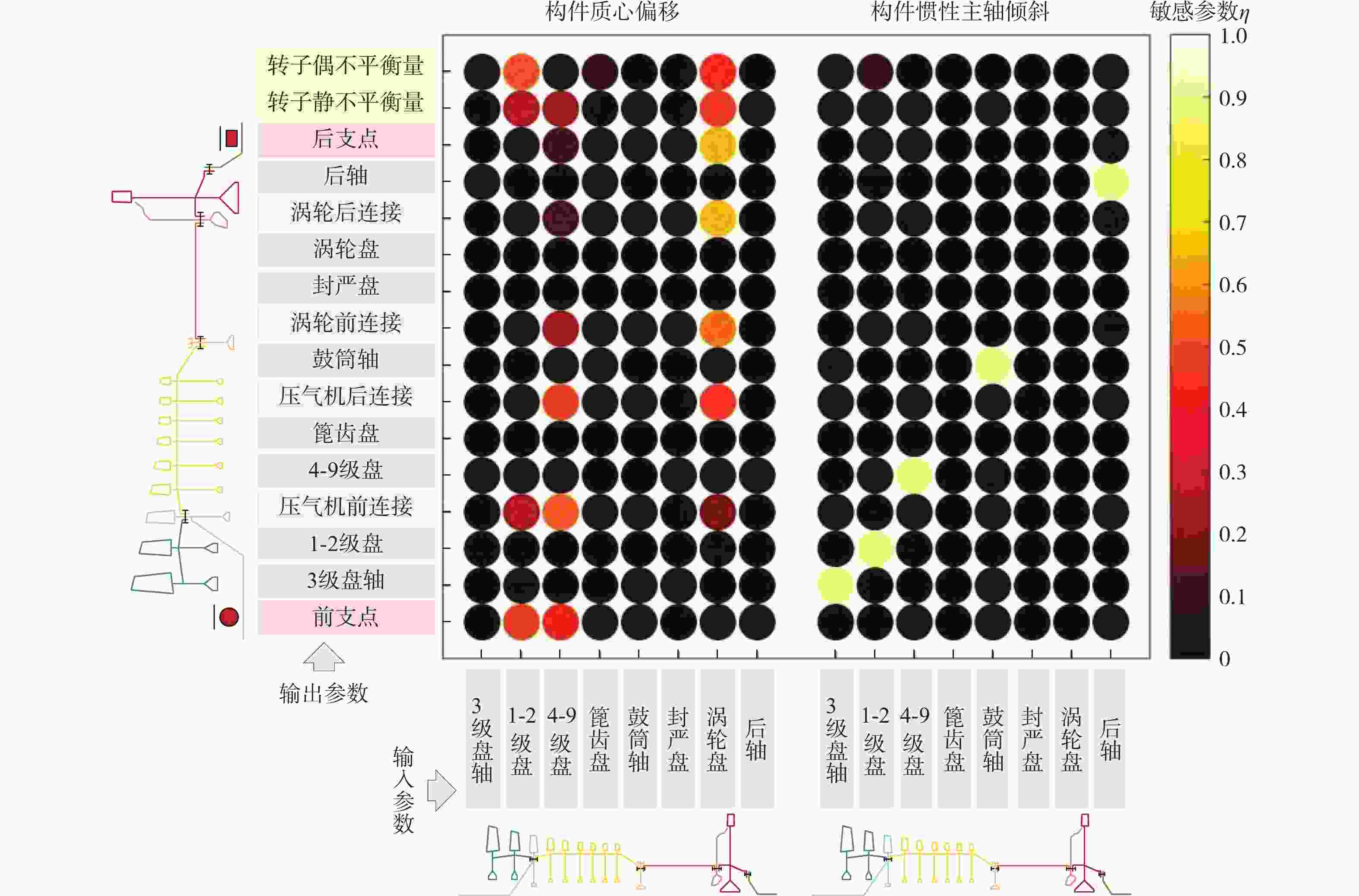 平衡1-2级盘 447 895 892 −0.6 4-9级盘 1964 3858 4679 41.8 涡轮盘 231 566 508 −25.3 构件 平均值/mm 极限值/mm 最大值/mm ${\mu _{{\text{un}}}}$/% 端面