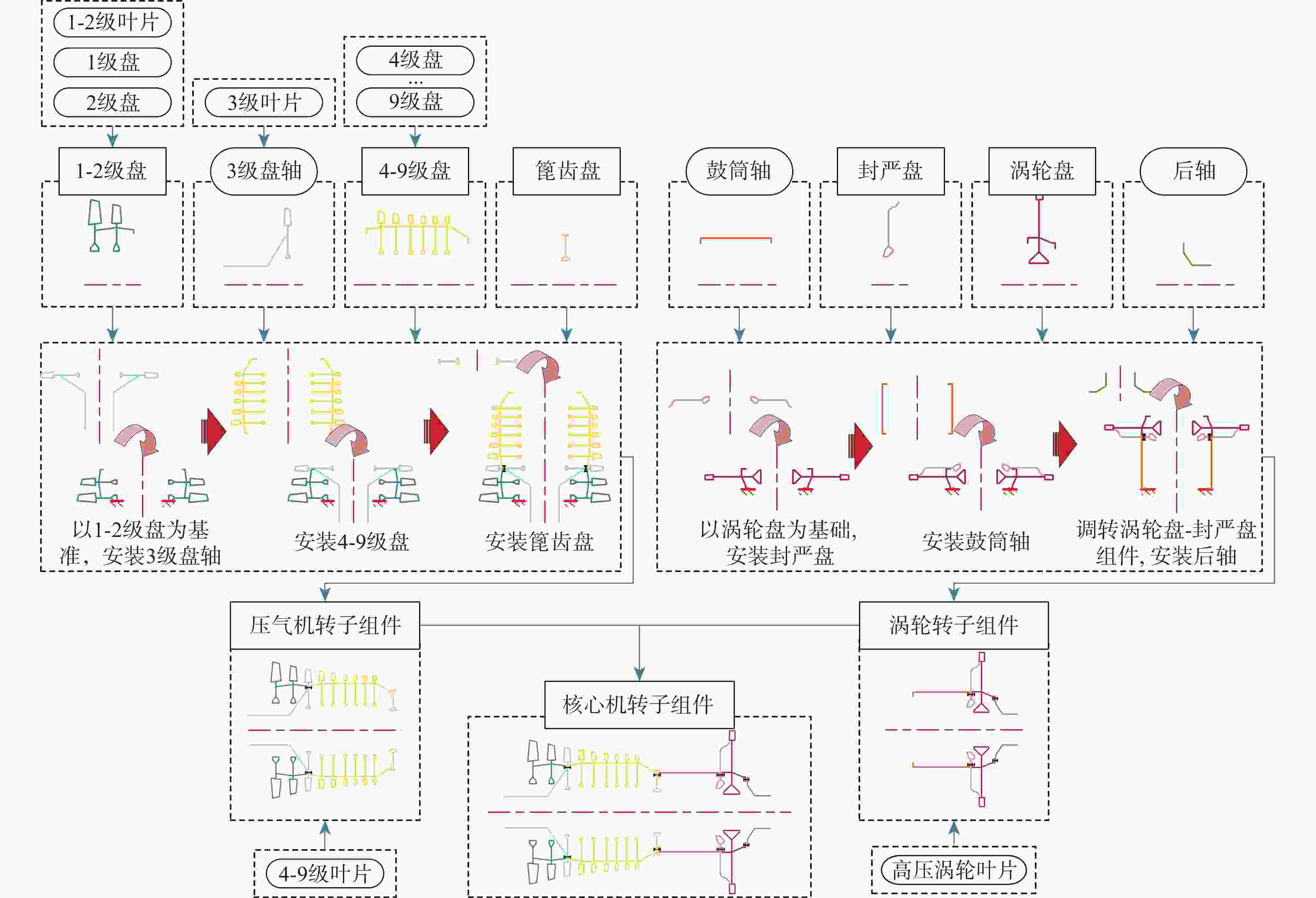 针对先进航空发动机转子数字装配和不平衡分布控制问题,提出了转子不平衡分布数字孪生模型的建模方法。开展了构件装配参数对转子不平衡分布状态影响的敏感度评估,判定出大质量构件的静不平衡和位于转子中部构件端面跳动是影响转子不平衡分布优劣的关键因素。基于数据融合方法,结合某大涵道比发动机核心机转子多台次装配统计数据,成功识别并修正了该转子不平衡分布数字孪生模型中关键参数的阈值,为进一步开展转子结构状态控制和动力响应预测提供了模型基础。