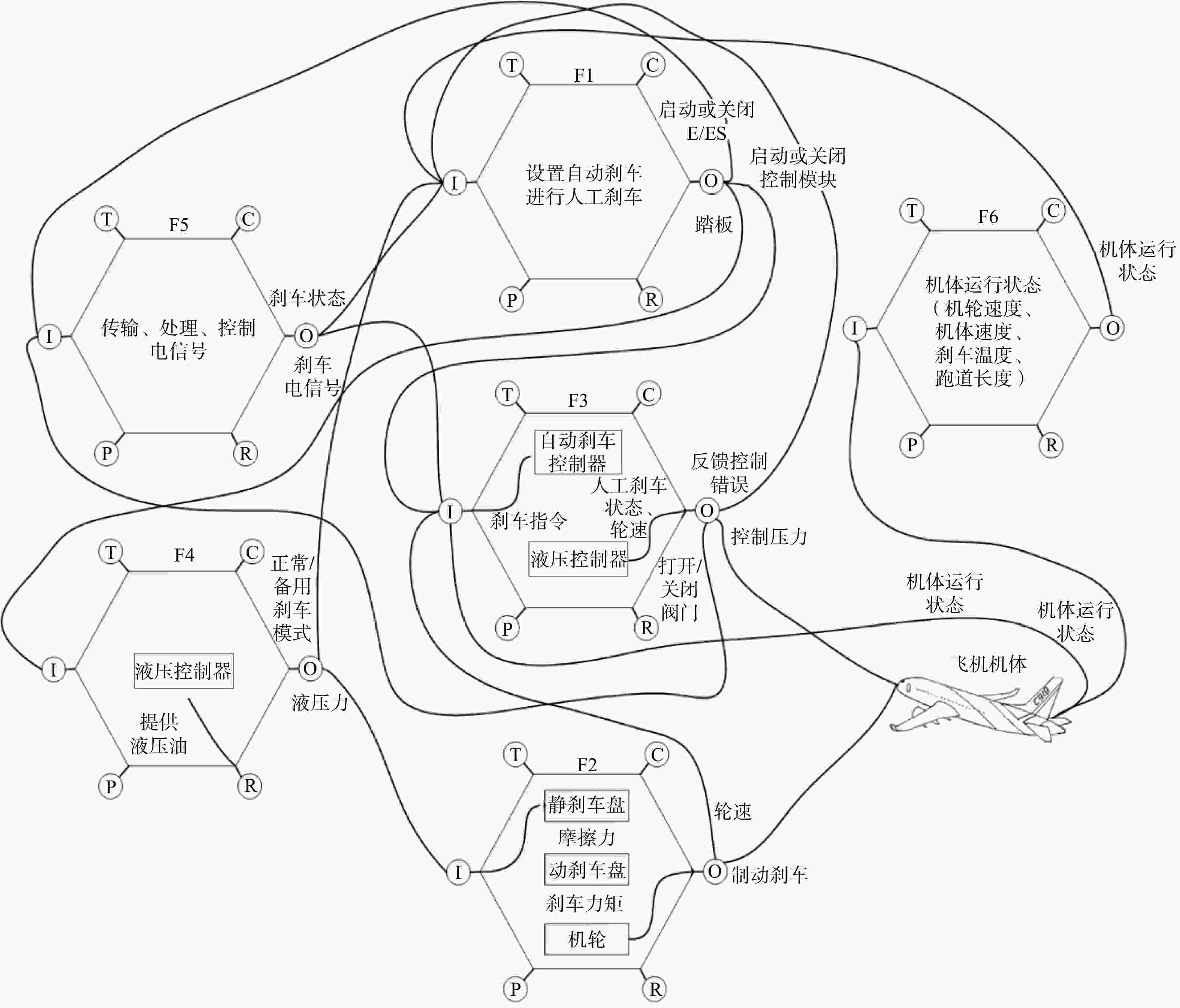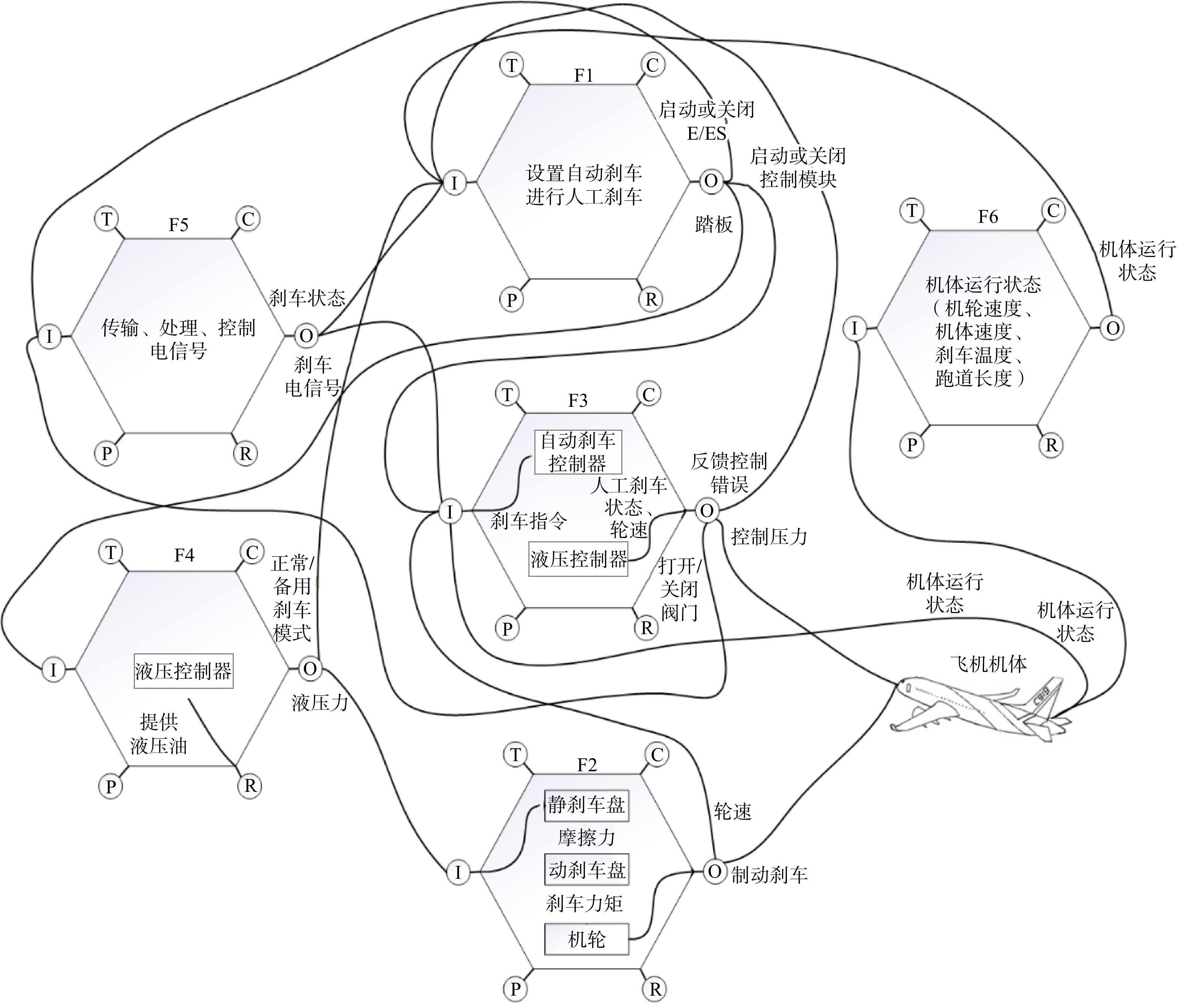 不足的制动指令可靠性 提供可能安全的控制行为但提供节点过早 自动制动在飞机接地前执行制动指令 时序性 提供可能安全的控制行为但提供节点过晚 自动制动在飞机接地后延迟TBD(单位:s)秒才提供制动指令 时序性 提供可能安全的控制行为但提供节点顺序错误 自动制动在飞机接地前执行制动指令,在接地后延迟TBD(单位:s)才停止制动 时序性 控制行为持续太久 自动制动在飞机着陆后持续提供制动指令的时间过长 持续性 控制行为停止过早 自动制动在飞机达到TBD滑行速度前停止提供制动指令 持续性 注:TBD表示待定或尚未确定。 表 4 刹车系统各功能单元的FRAM六角特征分析