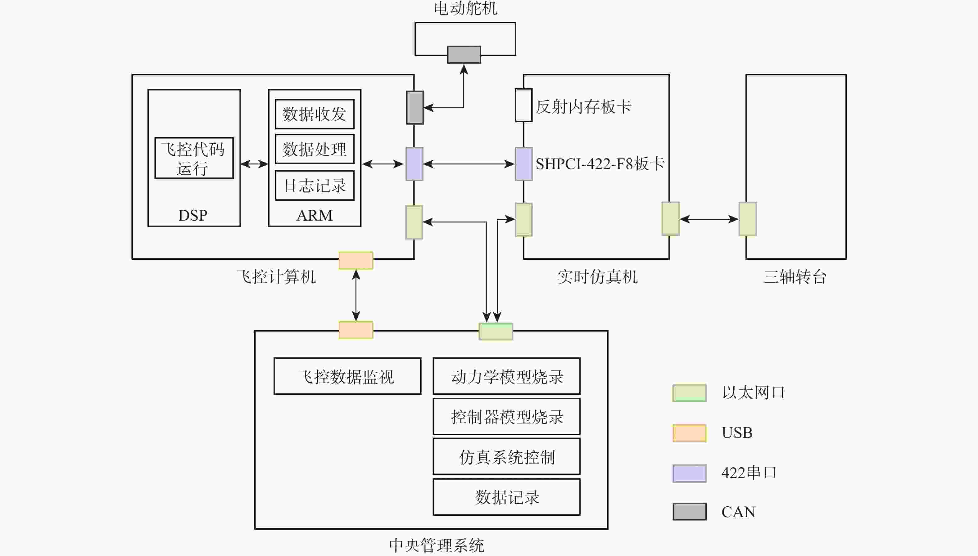 为验证拦截弹直接力和气动力复合控制系统的功能性,构建一套半实物仿真系统,并开展了仿真验证。搭建拦截弹六自由度动力学数学模型;设计包含直接力控制、气动力控制及控制策略的复合控制系统;通过对系统架构、硬件型号、软件平台、数据交互网络等进行研究,构建小型半实物仿真系统,并进行了半实物仿真置信度评估。在多种拦截场景下,比较全数字仿真和半实物仿真复合控制的控制效果,验证了拦截弹复合控制系统的正确性和有效性,证明了构建的半实物仿真系统具备较高的置信度,可以用于算法和模型的验证。
