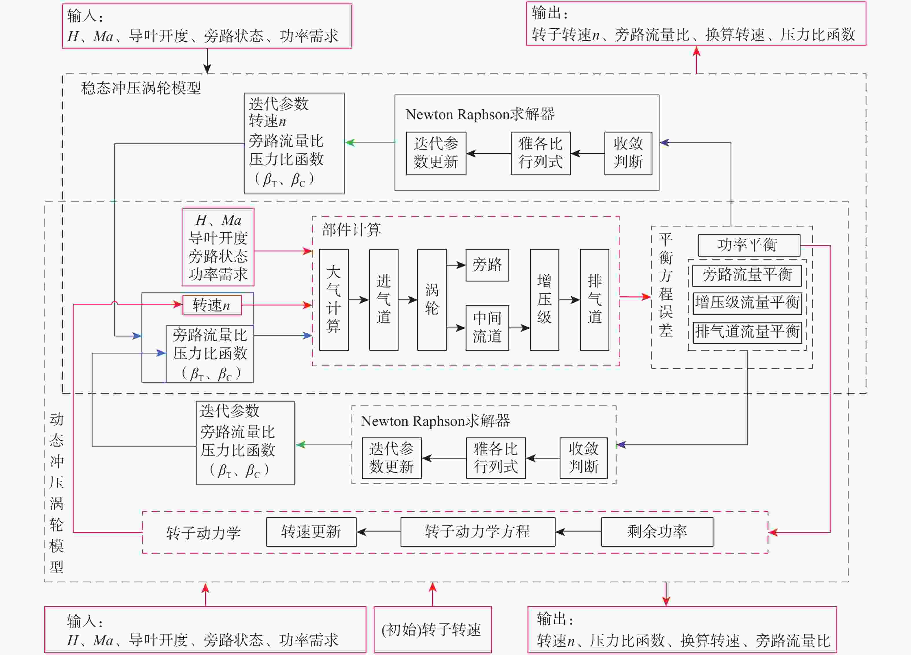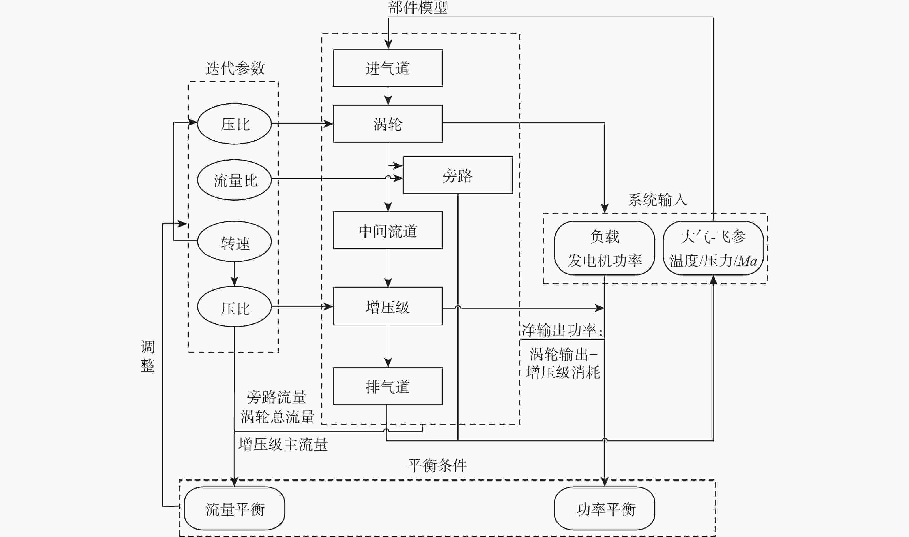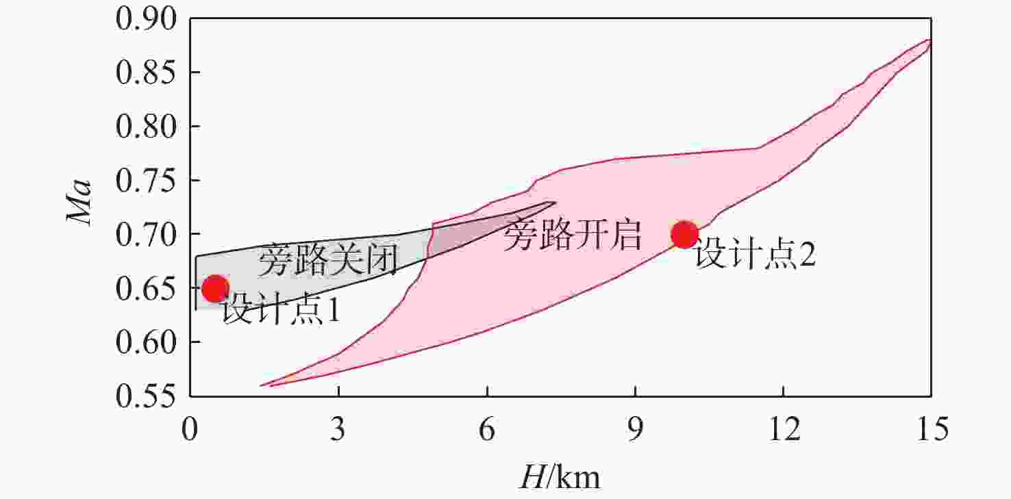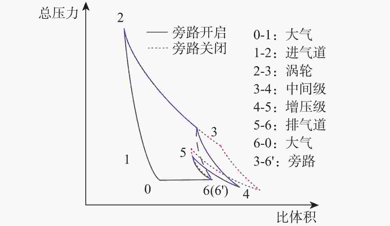 随着机载附件系统电力需求的日益增长,涵道式冲压发电涡轮因其高效、低阻的特性,被视为理想的机载发电方案。针对涵道式冲压发电涡轮布局结构导致的部件耦合性强、系统建模与性能分析难度大等挑战,提出涵道式冲压涡轮部件级模型建模和参数设计方法。采用部件法进行建模,并通过粒子群优化算法实现模型参数设计,自动实现设计点性能精确匹配;同时采用Newton Raphson方法进行模型求解,为系统分析提供可靠依据。针对某型带有旁路和增压级的涵道式冲压涡轮系统,进行模型建立和参数设计,验证了所提方法的有效性,并初步揭示了该系统的潜在优势。非设计点仿真结果显示:此系统旁路开启时26 kW下工作包线面积拓展为关闭状态的332.48%,显著增大了有效工作范围,动态阶跃干扰后响应达到95%的时间增大至307.59%,系统的稳定性显著提升。