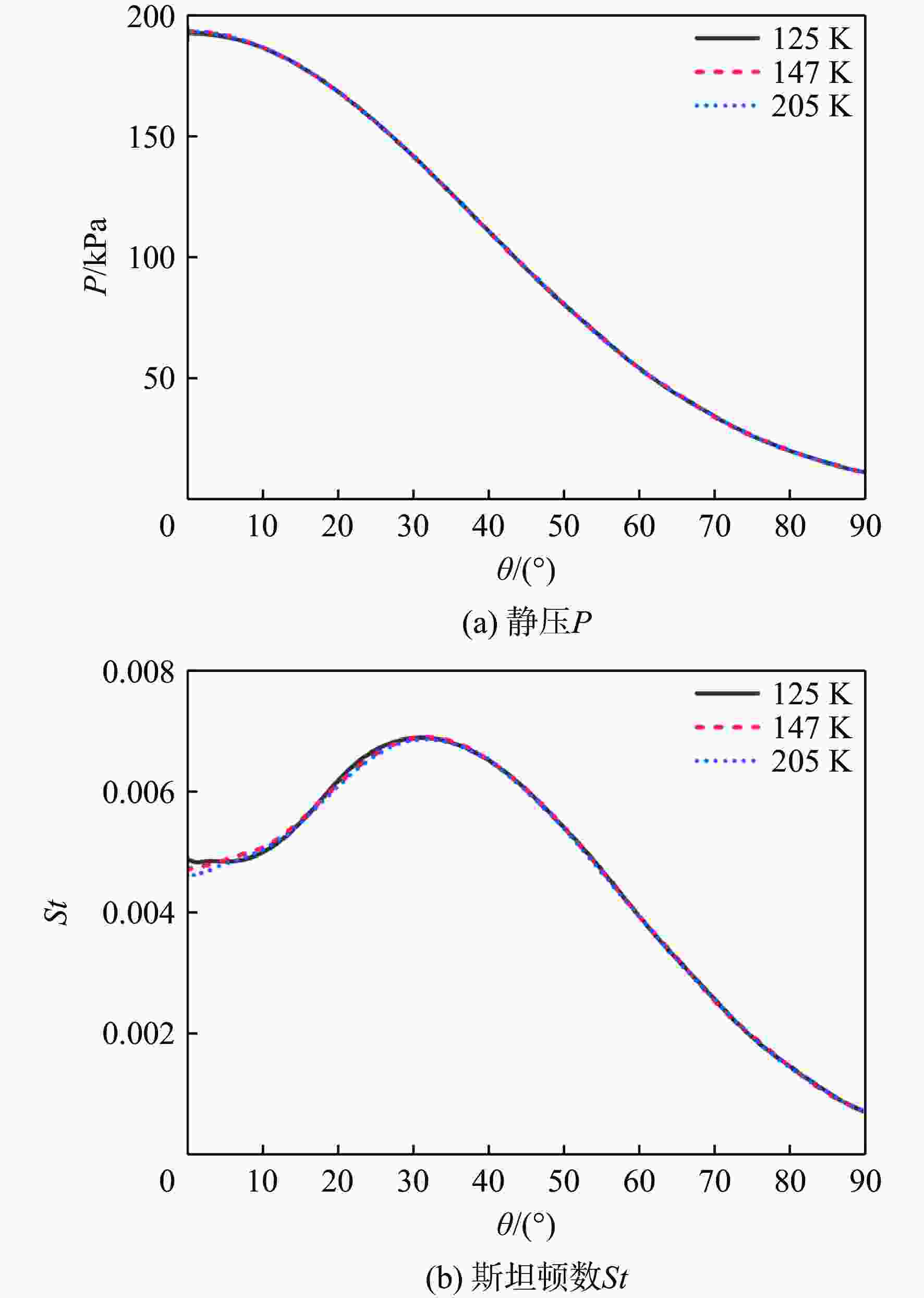 网格数 首层网格高度/m 增长率 网格雷诺数 平均斯坦顿数 125 000 4×10−7 1.2 16 0.00 429 147 000 2×10−7 1.1 8 0.00 442 205 000 1×10−7 1.1 4 0.00 441 -
