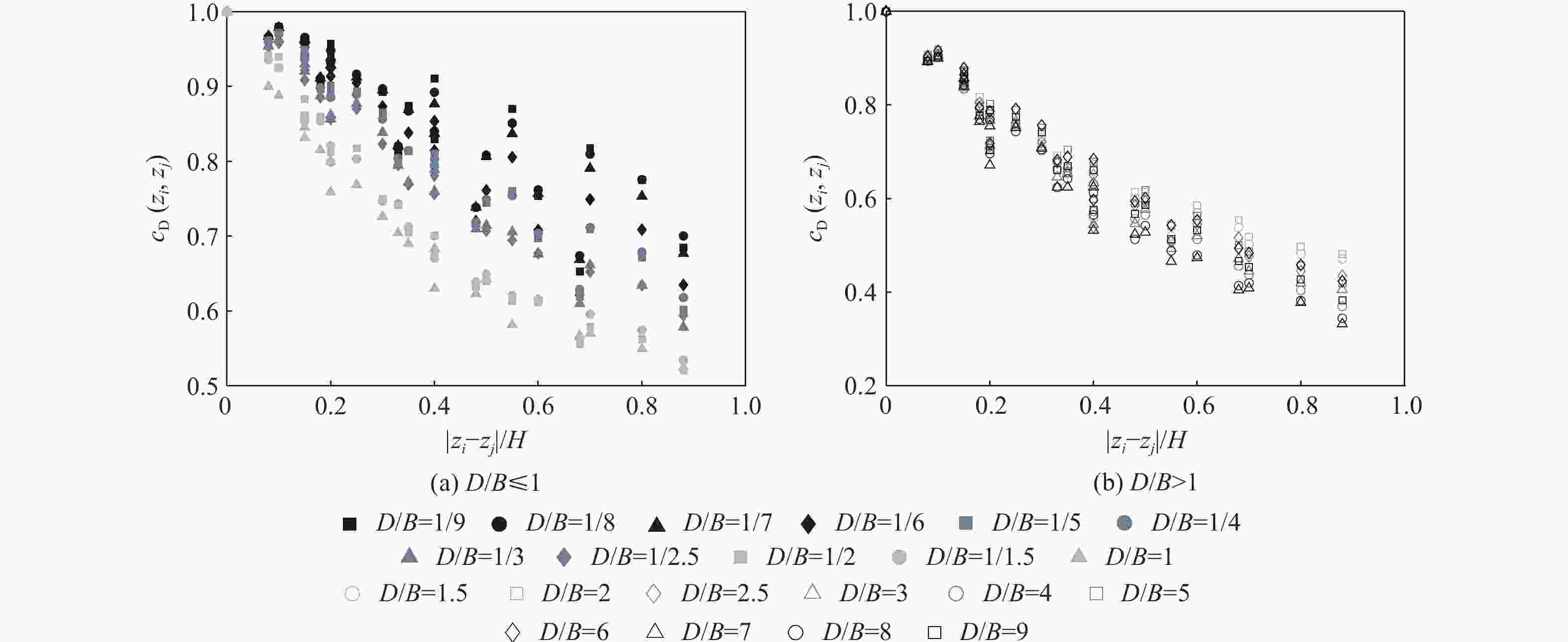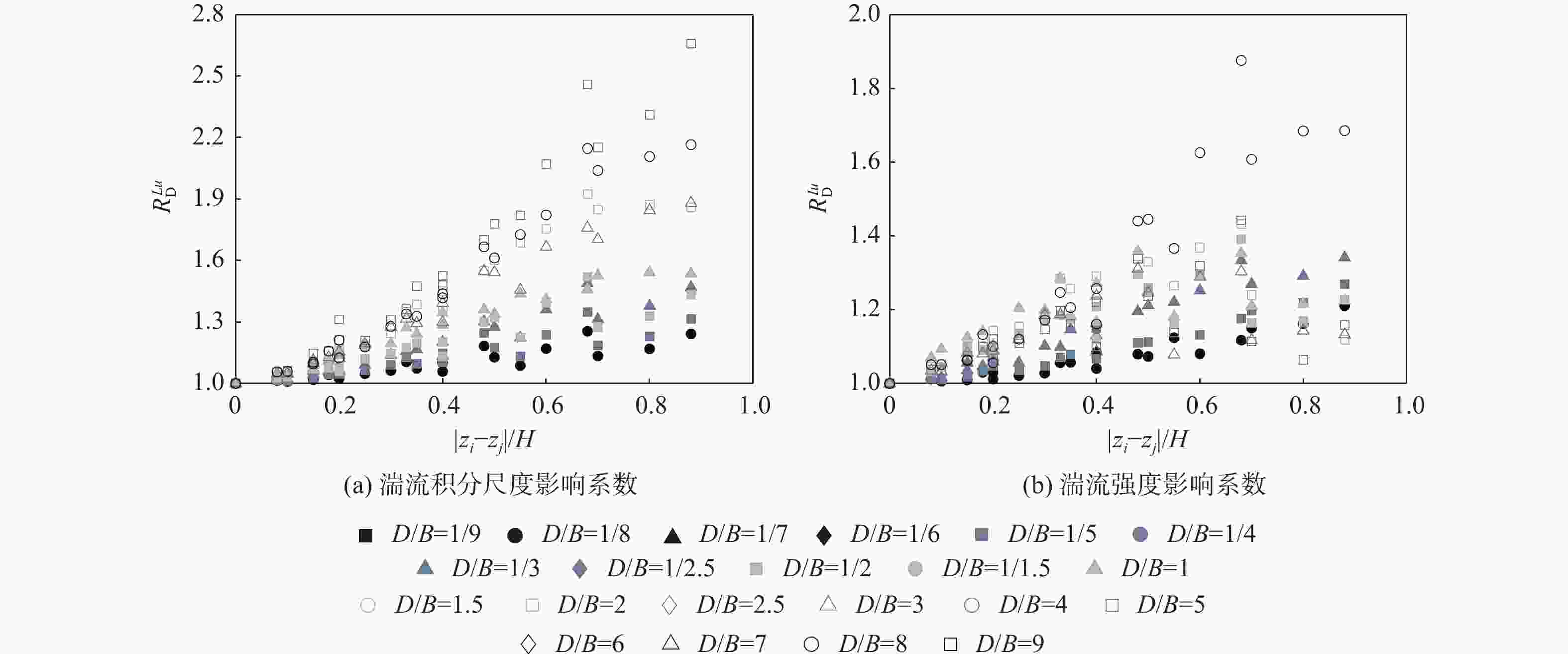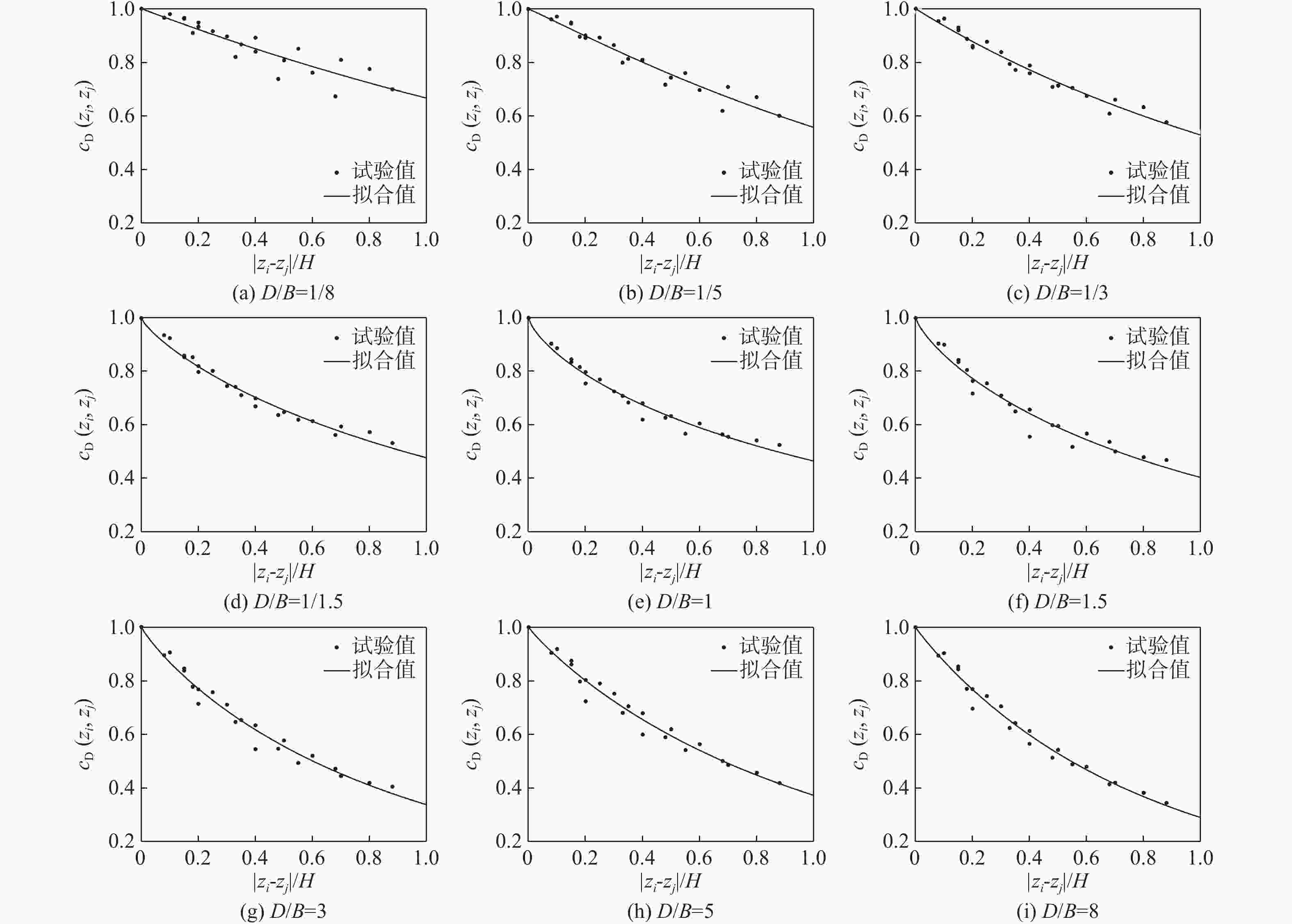 $ s=\left| {{\textit{z}}}_{i}-{{\textit{z}}}_{j}\right| {B}^{\alpha /2}/{H}^{1+\alpha /2} $, α为风速剖面指数