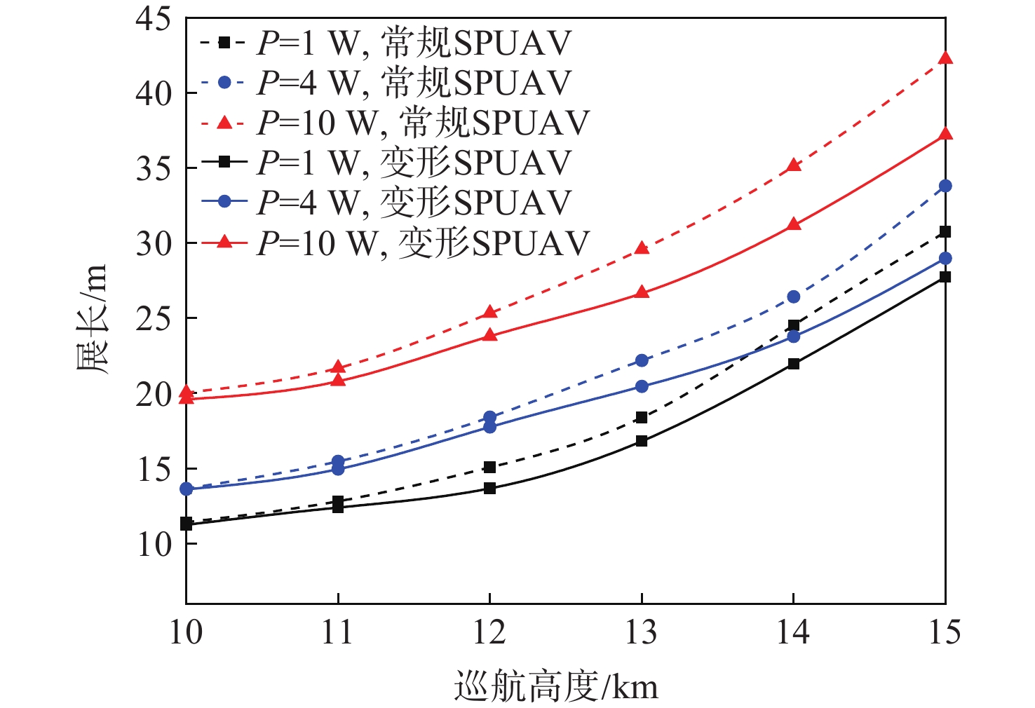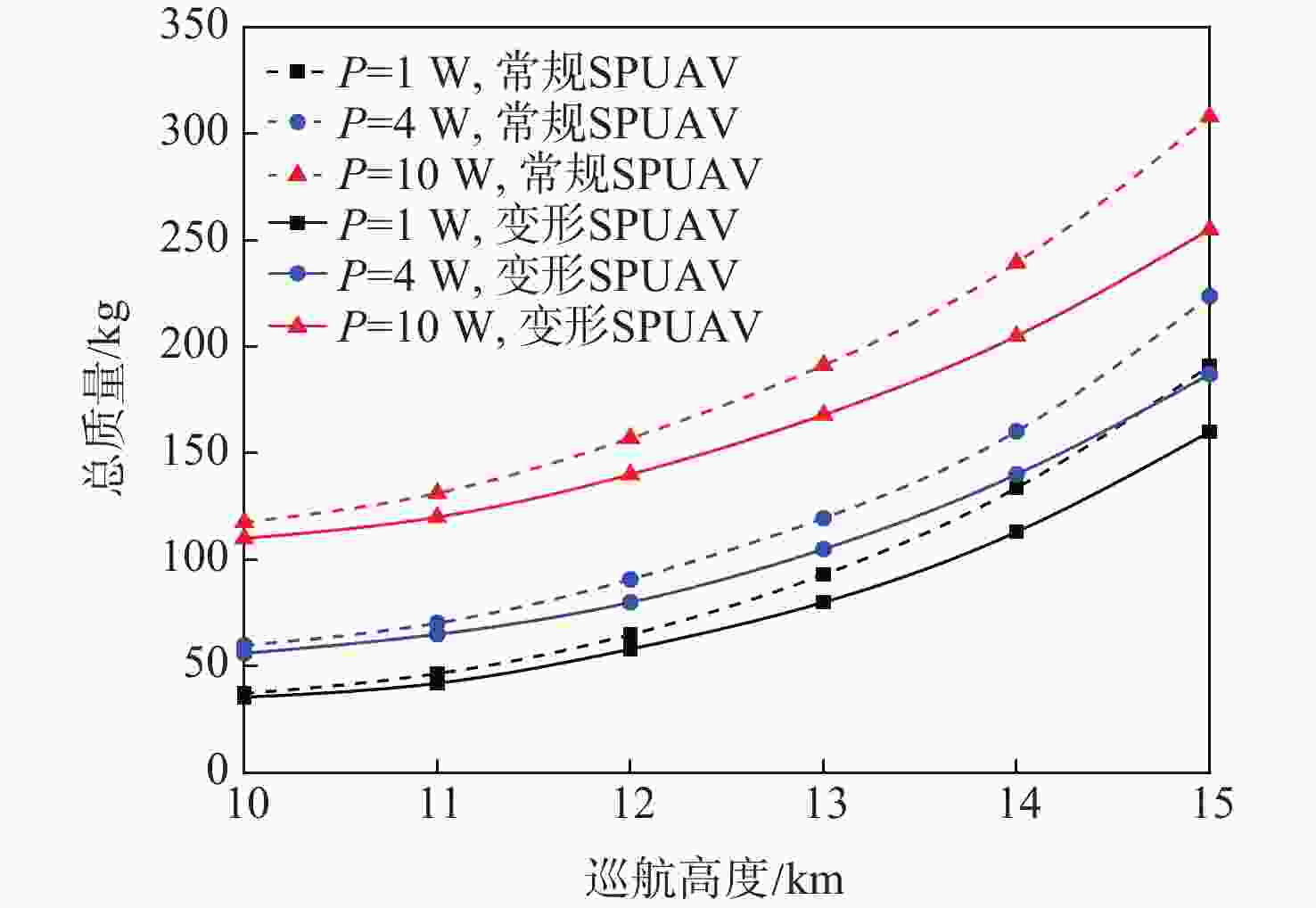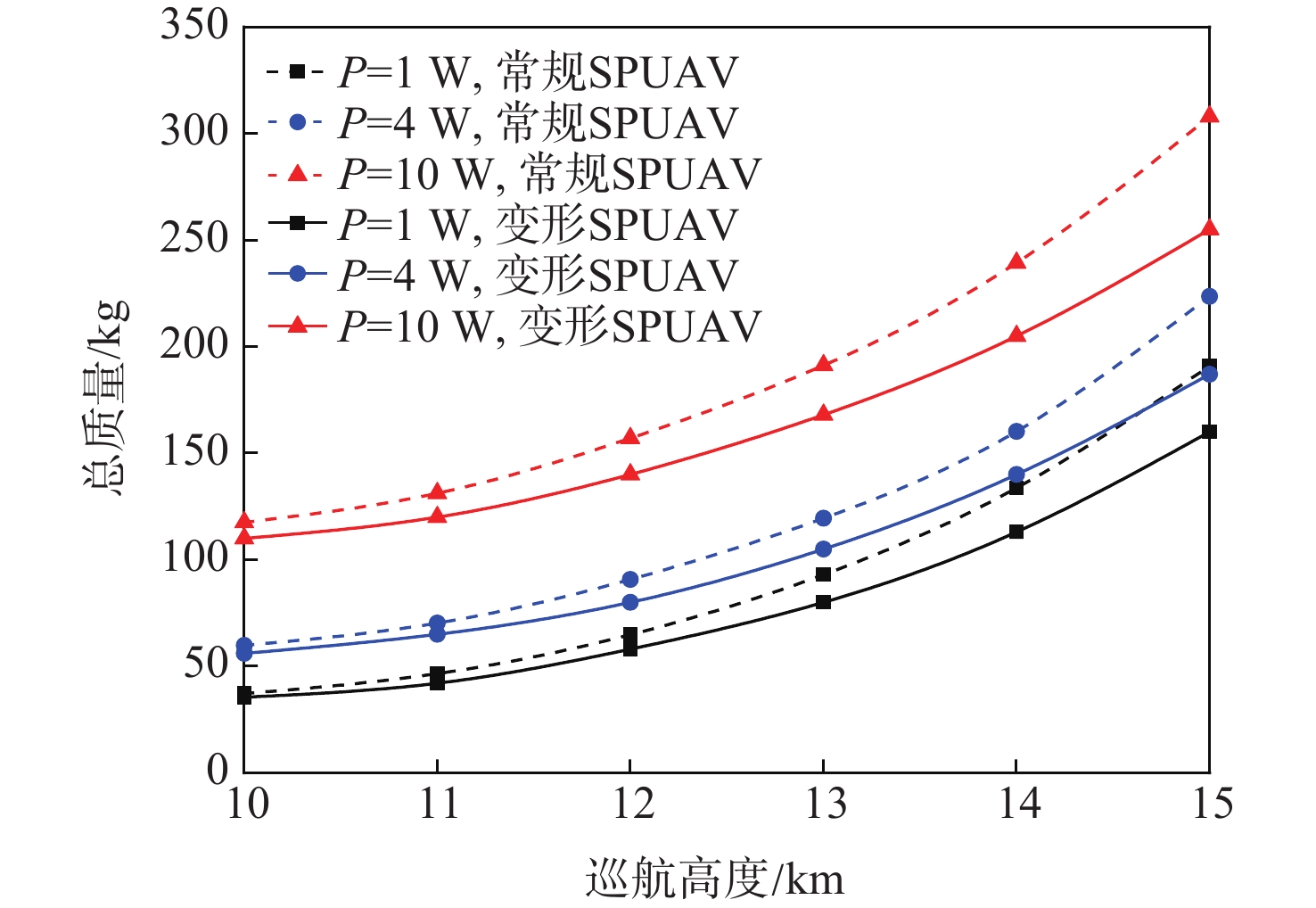 参数 取值 ksc/(kg·m−2) 0.4 kba/(Wh·kg−1) 300 kmp/(kg·kW−1) 8 kpr/(kg·kW−1) 0.42 ηsc 0.3 ηmp 0.97 ηpr 0.85 ηch 0.95 ηdc 0.95 表 3 太阳能无人机设计指标