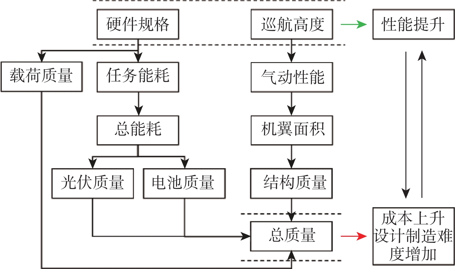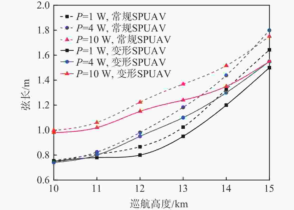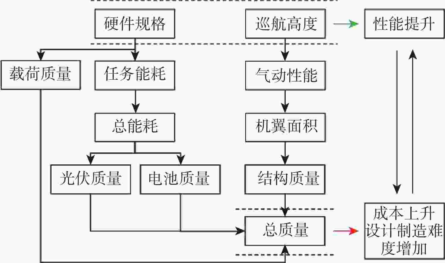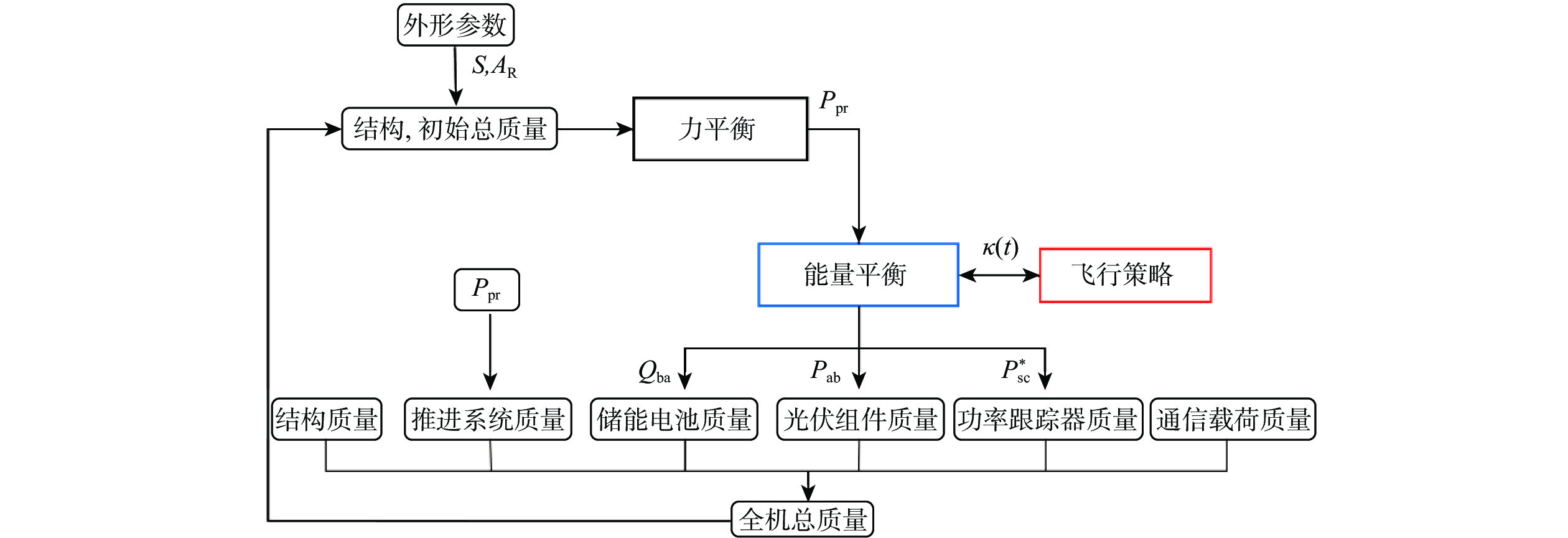 参数 取值 ksc/(kg·m−2) 0.4 kba/(Wh·kg−1) 300 kmp/(kg·kW−1) 8 kpr/(kg·kW−1) 0.42 ηsc 0.3 ηmp 0.97 ηpr 0.85 ηch 0.95 ηdc 0.95 表 3 太阳能无人机设计指标
