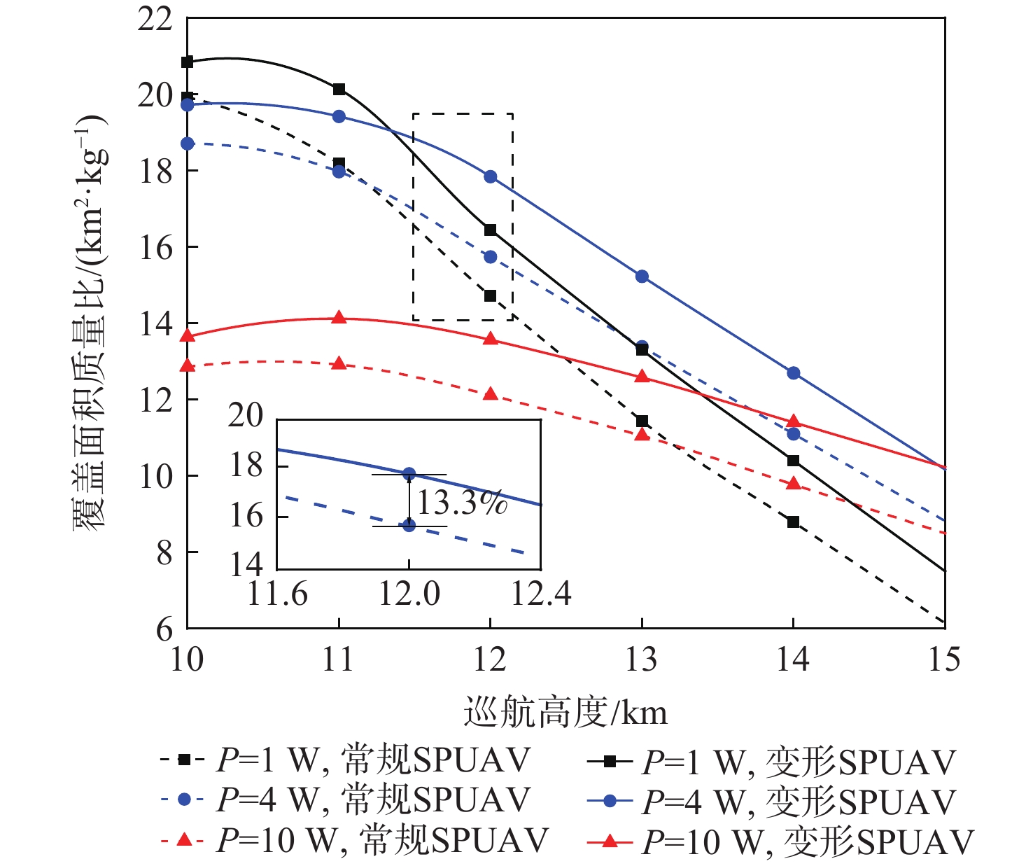 高空太阳能无人机(SPUAV)平台在充当空中基站增强、补盲偏远地区、灾害应急、远程中继通信方面具有其他平台难以比拟的优势,但太阳能无人机设计域狭窄,需要综合考虑载荷约束和无人机平台特点耦合设计。重点考虑通信任务与平台能量的双重约束,设计一种构型可变的太阳能无人机平台,研究其总体方案设计与优化,使太阳能无人机在满足24 h能量闭合前提下能够最大化覆盖通信范围。通过建立通信、太阳辐照、质量预测等模型,设置能量平衡约束与通信约束条件,建模优化问题,进而设计启发式算法的全局优化框架。仿真分析结果表明:可变构型下的总体方案与常规构型相比能够显著减少总质量,特别是在高空重载的状况下能够提高整体方案的效用,仿真条件下总质量节约13.3%;通信载荷规格的提高及巡航高度的增加能够增加中继通信覆盖范围,但是需要以平台总质量增加作为代价;硬件设计方案一定时,选定低巡航高度可以使通信覆盖效费比更高。