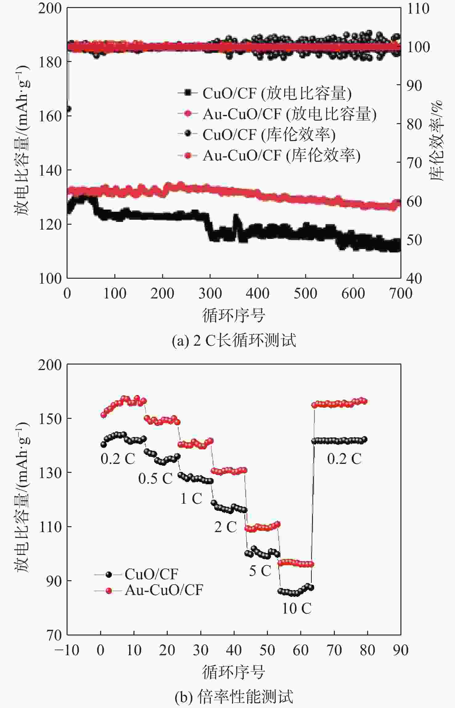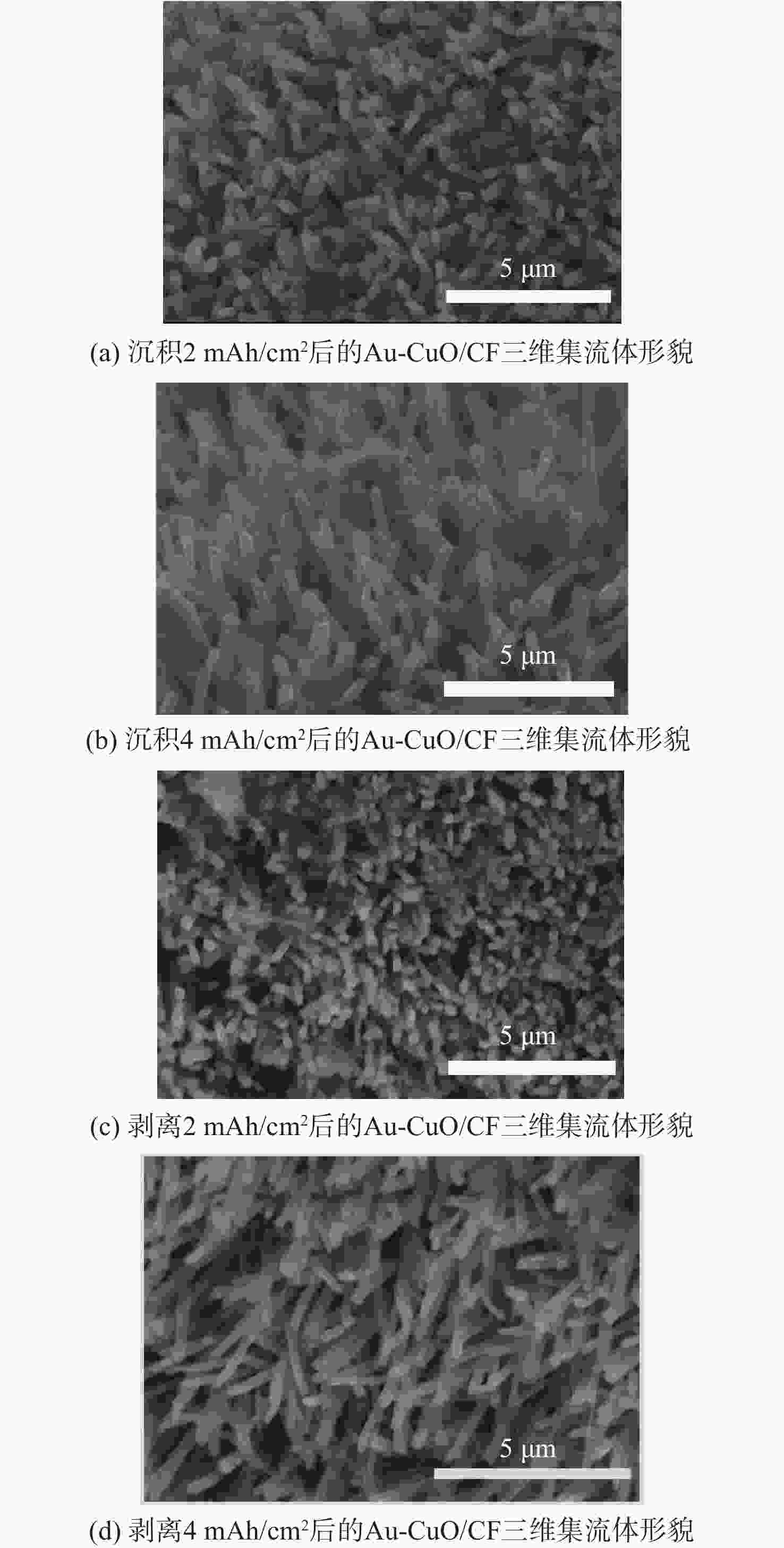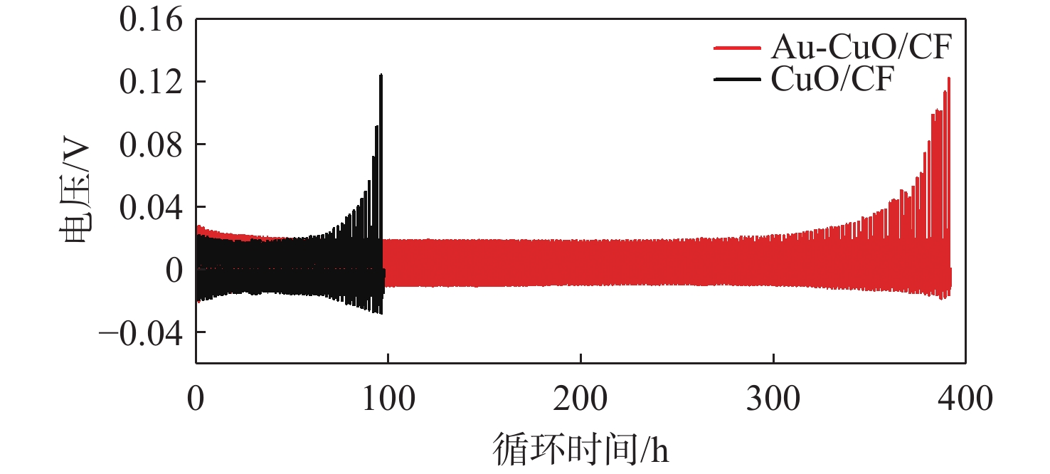 Abstract:With the growing strategic position of near-space vehicles, the demand for energy storage batteries with high power, high specific energy, and long cycle life has also increased. Lithium metal battery with ultra-high theoretical specific energy is a promising candidate for the next-generation energy storage system of near-space vehicles. Lithium metal exhibits extremely low reduction potential and high theoretical capacity, but its application is limited by issues associated with dendrite growth. In this paper, based on oxidation etching and ion exchange mechanism, a three-dimensional (3D) Au-CuO nanowire array current collector on copper foam (CF) (Au-CuO/CF nanoarray 3D current collector) was successfully prepared via the preparation of CuO nanowire array on CF and the introduction of Au as lithophilic sites. This current collector was then applied as a lithium metal battery anode. Compared to the CuO/CF nanoarray 3D current collector, the Au-CuO/CF nanoarray 3D current collector demonstrated significantly improved Coulombic efficiency, cycle life, and cycling stability. When paired with a lithium iron phosphate (LFP) cathode, the full cell achieved a capacity retention of 97.7% after 700 cycles. The Au-CuO/CF nanoarray 3D current collector features simple preparation and excellent electrochemical performance, with the full cell demonstrating outstanding cycling stability and exceptional capacity retention, showing great potential as a next-generation high-energy-density lithium metal battery anode current collector.