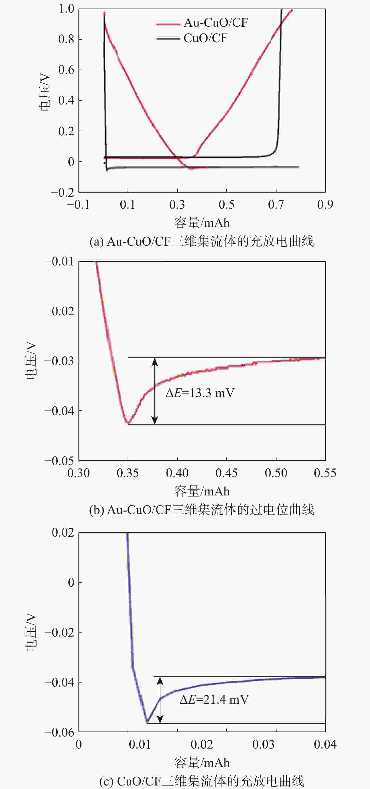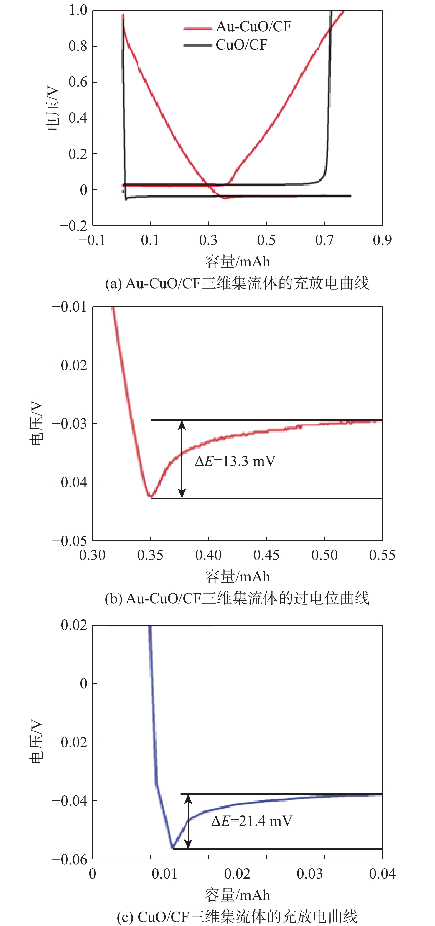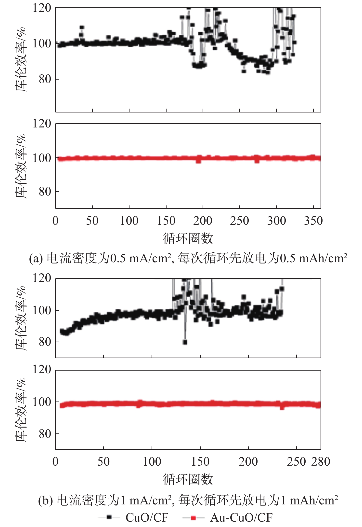 Abstract:With the growing strategic position of near-space vehicles, the demand for energy storage batteries with high power, high specific energy, and long cycle life has also increased. Lithium metal battery with ultra-high theoretical specific energy is a promising candidate for the next-generation energy storage system of near-space vehicles. Lithium metal exhibits extremely low reduction potential and high theoretical capacity, but its application is limited by issues associated with dendrite growth. In this paper, based on oxidation etching and ion exchange mechanism, a three-dimensional (3D) Au-CuO nanowire array current collector on copper foam (CF) (Au-CuO/CF nanoarray 3D current collector) was successfully prepared via the preparation of CuO nanowire array on CF and the introduction of Au as lithophilic sites. This current collector was then applied as a lithium metal battery anode. Compared to the CuO/CF nanoarray 3D current collector, the Au-CuO/CF nanoarray 3D current collector demonstrated significantly improved Coulombic efficiency, cycle life, and cycling stability. When paired with a lithium iron phosphate (LFP) cathode, the full cell achieved a capacity retention of 97.7% after 700 cycles. The Au-CuO/CF nanoarray 3D current collector features simple preparation and excellent electrochemical performance, with the full cell demonstrating outstanding cycling stability and exceptional capacity retention, showing great potential as a next-generation high-energy-density lithium metal battery anode current collector.