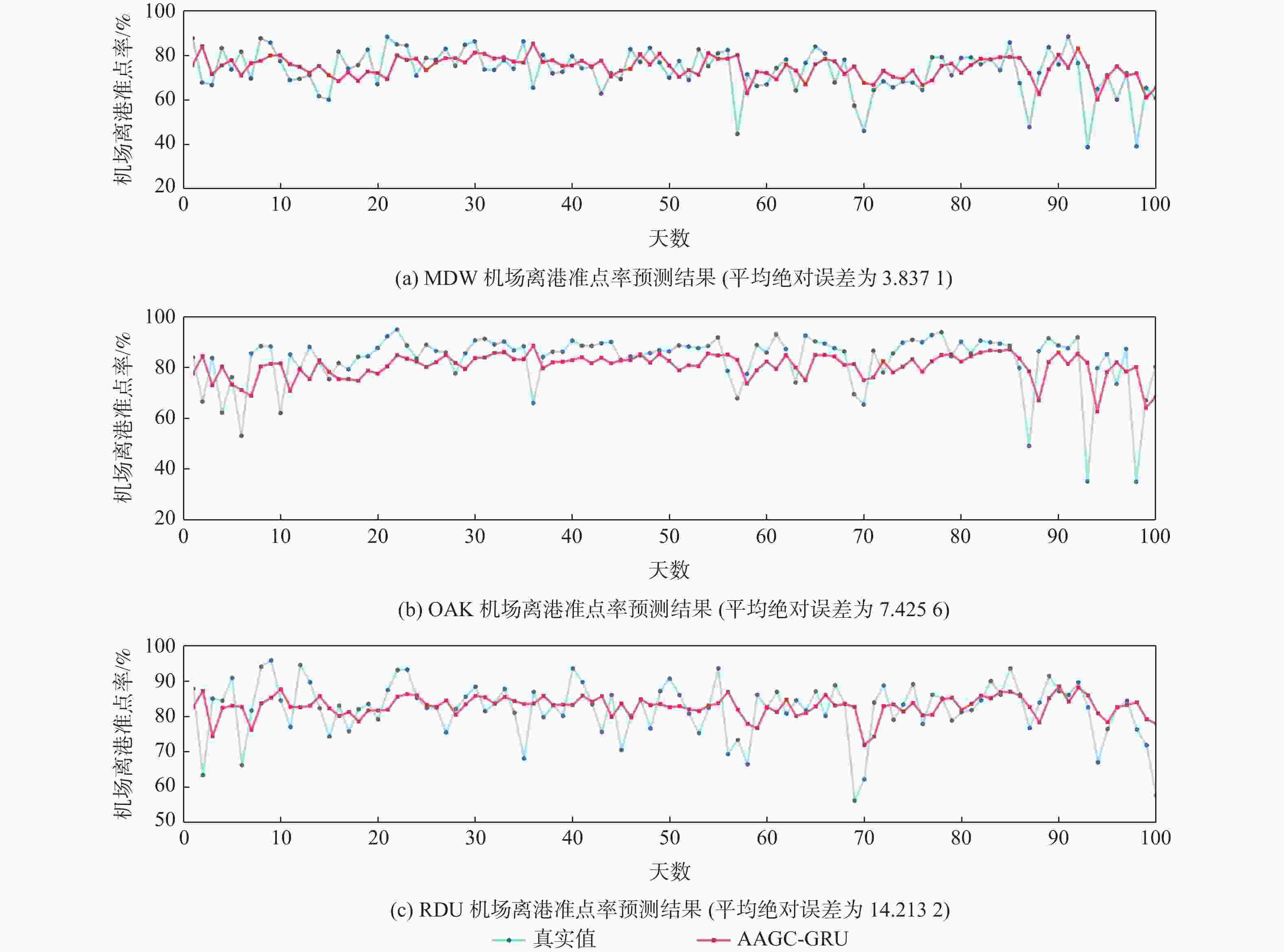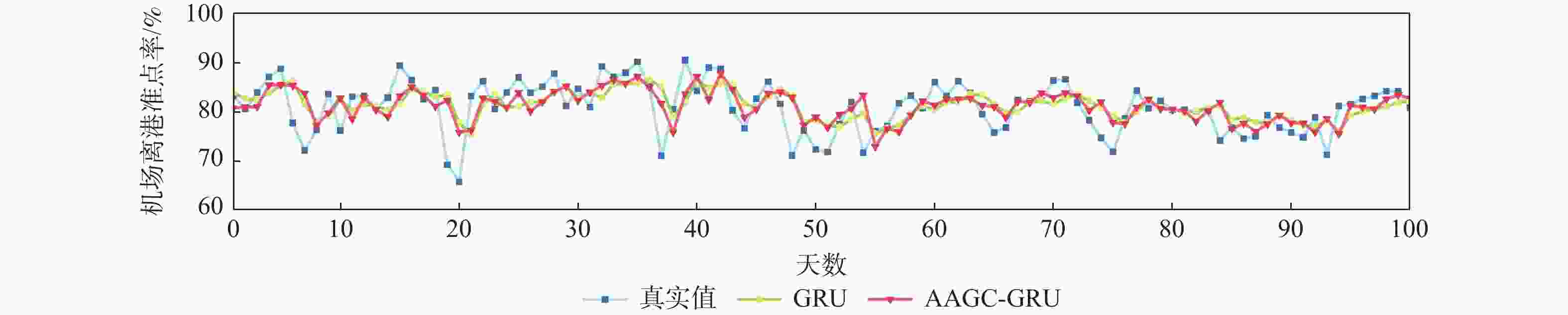 模型 浮点运算量/FLOPs 参数量 SAttGC-GRU 2822461 27408 TAttGC-GRU 2822479 27395 AAGC-GRU 2822591 27411 表 3 不同模型的预测结果