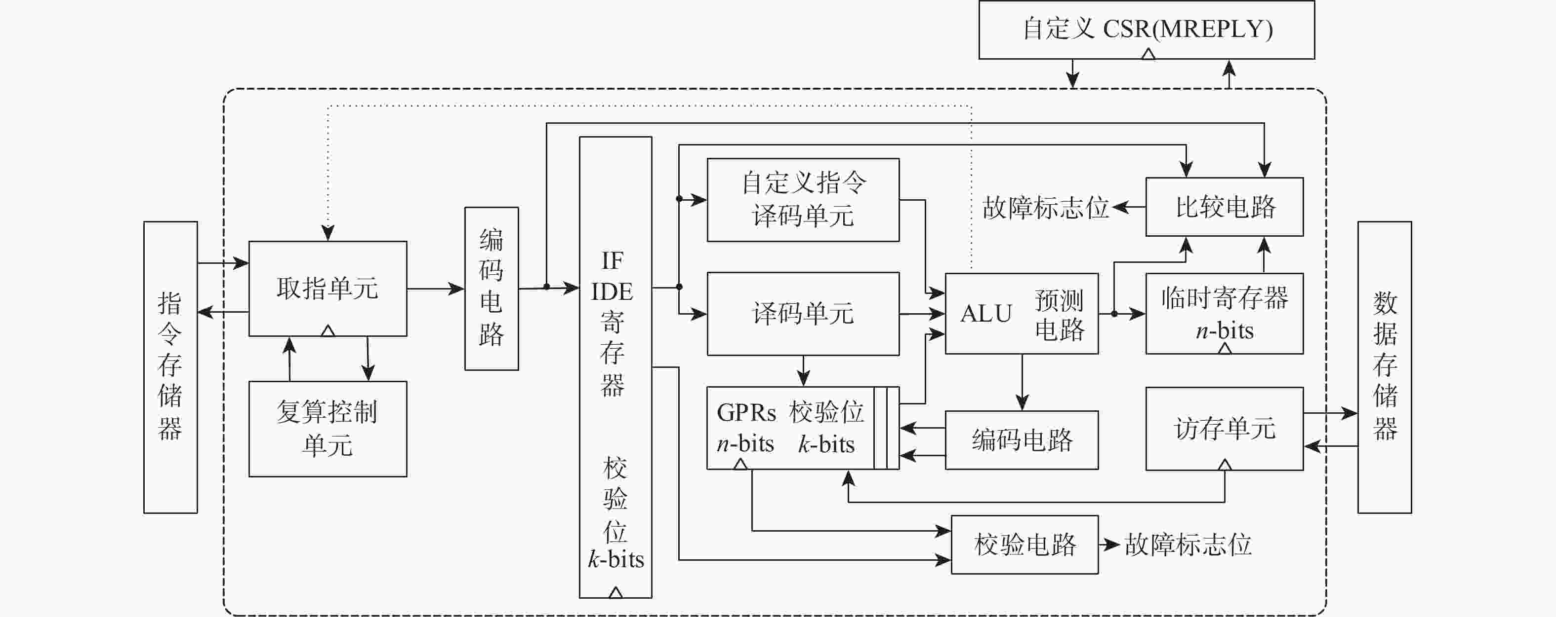 针对处理器运行时受到故障攻击出现的数据流错误,提出了一种面向RISC-V处理器微架构的模式可配置故障注入检测方法。该方法基于RISC-V指令集架构,利用其可扩展性添加带模式配置的自定义算术逻辑运算指令和控制与状态寄存器,以软硬件结合的方式同时实现算术逻辑运算和故障注入检测。在软件层面,通过写寄存器指令将配置信息写入自定义的控制与状态寄存器,配置自定义指令的故障注入检测模式,包括信息冗余和时间冗余2种故障注入检测模式及其参数;在硬件层面,实现了支持模式可配置故障注入检测方法的RISC-V处理器微架构。采用仿真器命令模拟故障注入,验证扩展后的RISC-V处理器的功能正确性与故障注入检测能力。实验结果表明:当信息冗余模式和时间冗余模式的应用频率相同时,模式可配置方法相较于单信息冗余方法,平均故障检测率提高13.34%,引入4.4%的平均资源开销;相较于单时间冗余方法,降低了8.24%的平均时间开销,故障检测率降低了13.33%。所提模式可配置方法可以实现故障检测率和时间开销的折中,适用于不同安全性和性能需求的应用场景。