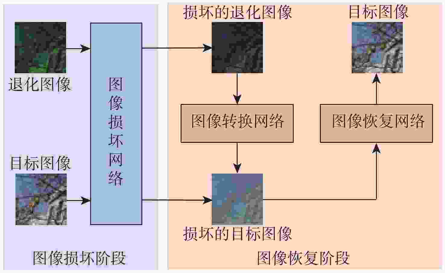 由于水体对光线不同粒子的吸收能力具有一定差异,水下采集到的图像往往存在严重的退化现象,严重影响水下机器人对环境的感知。传统的图像处理方法和基于退化模型的图像恢复算法受到水下环境的复杂性和物理参数不确定性的影响往往表现出较差的泛化能力。为提高水下图像的视觉效果,利用深度学习模型强大的学习能力,提出一种基于卷积神经网络的双阶段水下图像增强方法,通过图像损坏和图像恢复两个阶段的处理将退化的水下图像增强为视觉效果优秀的近空气图像。在Challenge60、U45、EUVP和RUIE数据集上的测试结果表明,提出的方法相比于已有水下图像复原、增强算法具有更好的增强效果,水下图像质量指标(UIQM)提升了5.18%,水下彩色图像质量评价(UCIQE)指标提升了6.64%。