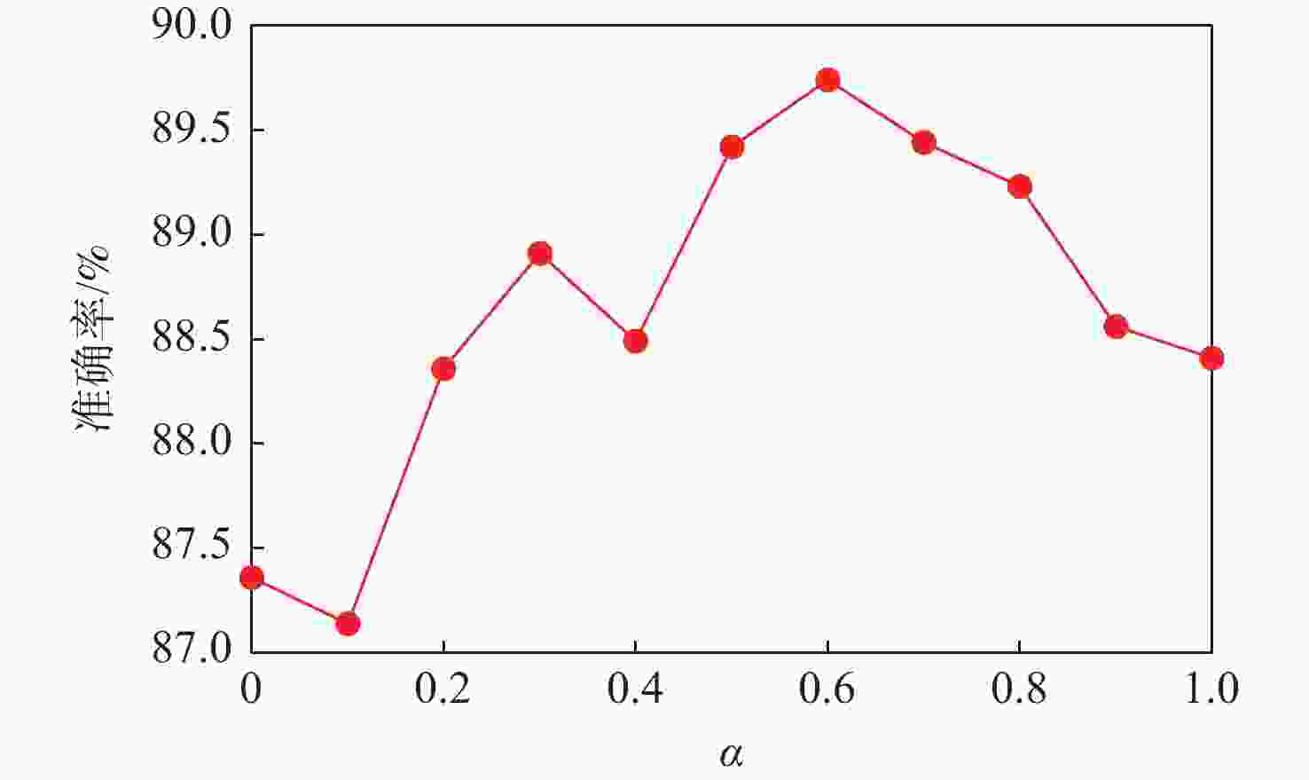 模型 网络 准确率/% 基准模型 AlexNet[16] 60.54 VGGNet[36] 70.64 ResNet[34] 72.22 Fine-tuned AlexNet[6] 72.43 Fine-tuned VGGNet[36] 83.05 Fine-tuned ResNet-50[34] 85.19 对比方法 PCNN (VGGNet)[20] 75.34 DeepSentiBank[21] 61.54 AR[29] 86.35 VSF[23] 88.11 MSRCA[30] 87.40 MLR[18] 87.87 本文模型 CHINet w/o G 87.36 CHINet w/o L 88.41 CHINet G&L 89.74 表 5 小规模数据集上的二元情感极性分类准确率比较