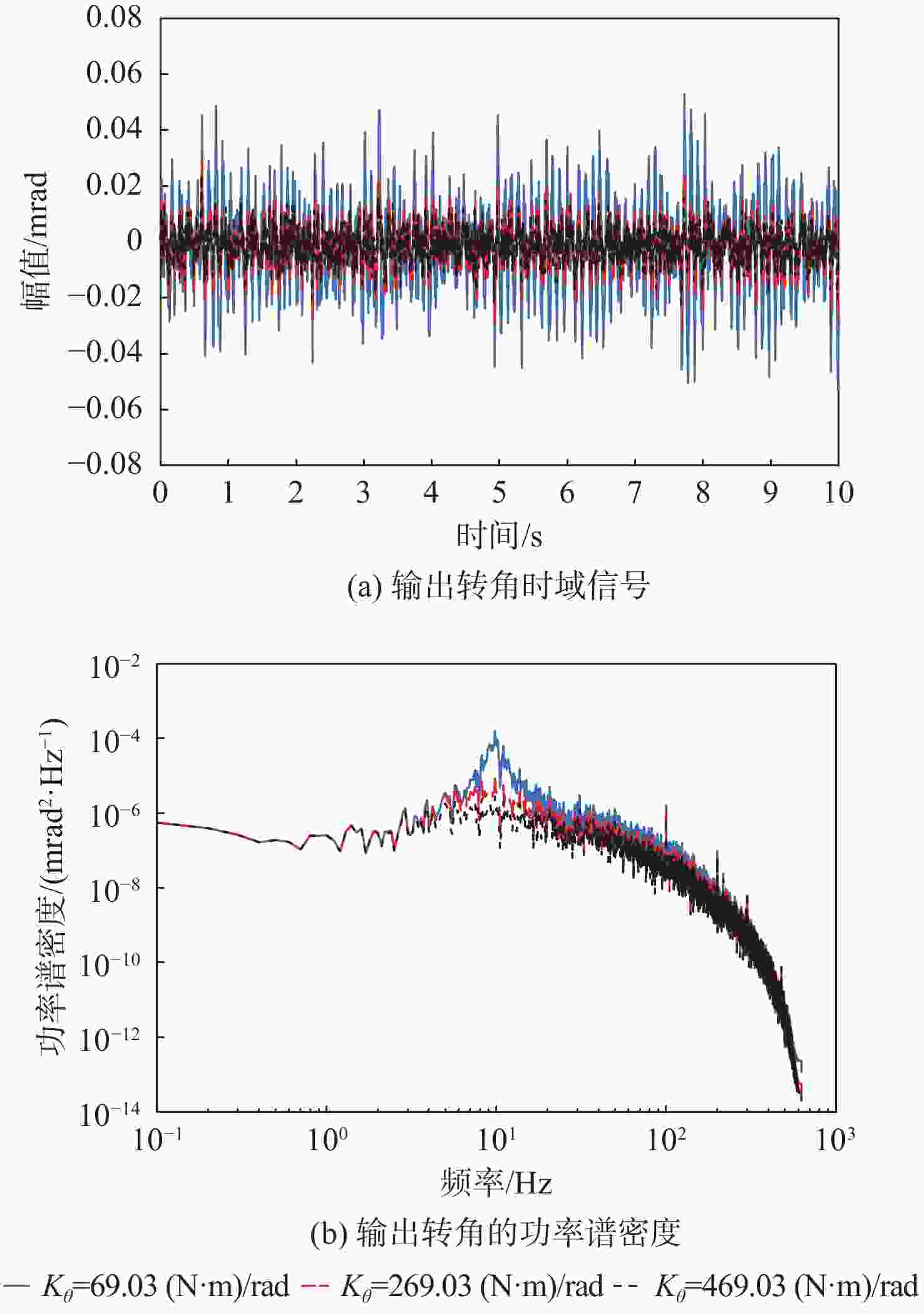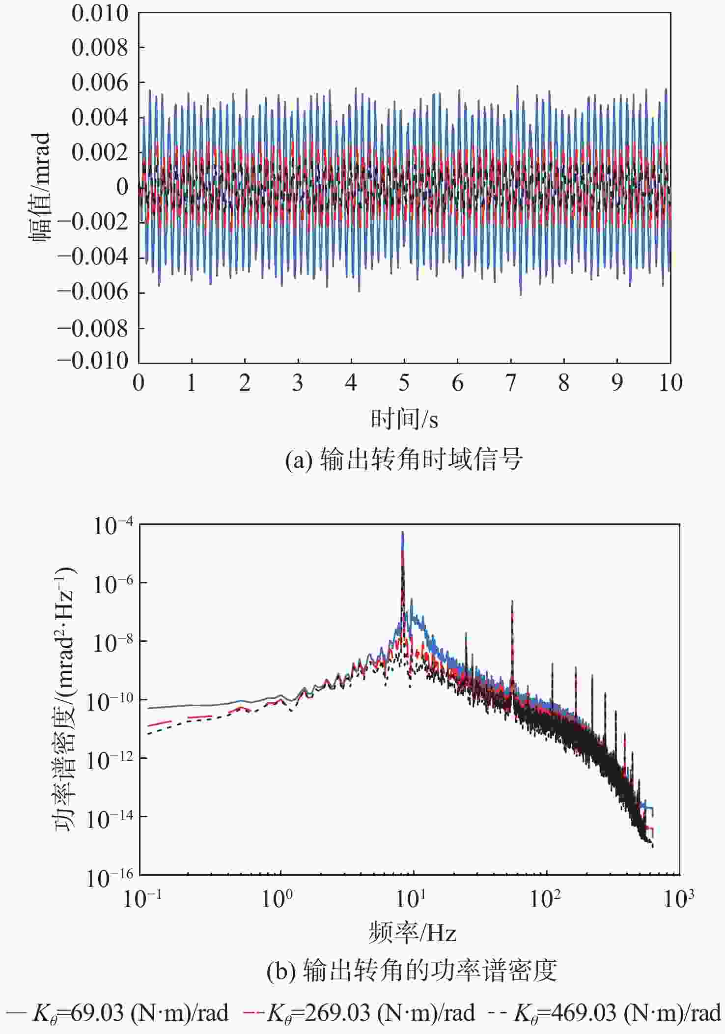 转动刚度/( N·m·rad−1) 输出转角均方根/μrad 等效角位移/μrad 69.03 3.2992 3.2993 269.03 1.4495 1.4495 469.03 0.8466 0.8467 -