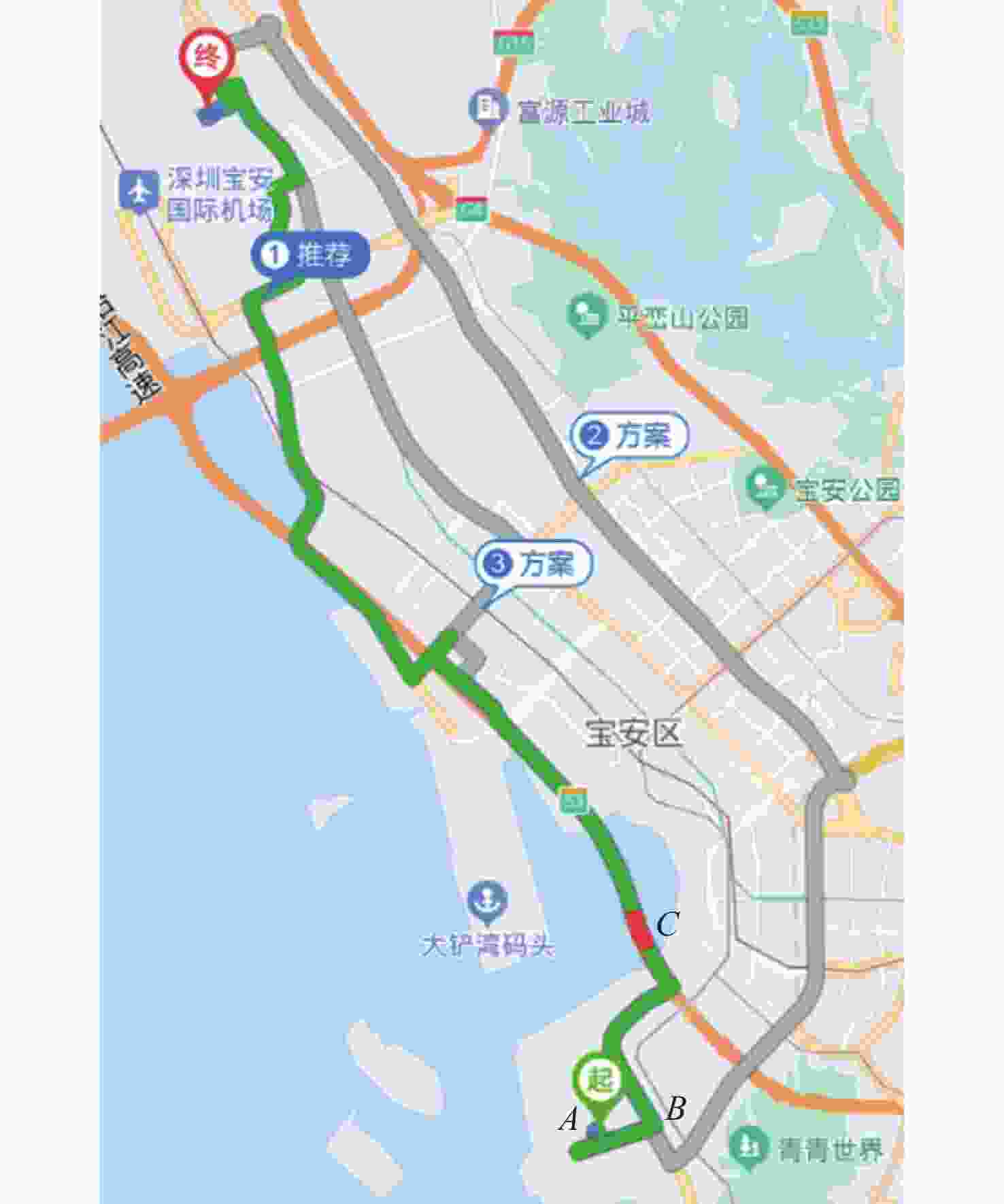 路线 停靠点数量 事故易发路段数量 路线长度/km 拥堵长度/km 路线1 0.61 0 0.54 0.49 路线2 0.69 0.45 0.64 0.55 路线3 0.39 0.90 0.64 0.68 最优 0.69 0.90 0.64 0.68 最劣 0.39 0 0.54 0.49 表 3 路线风险性