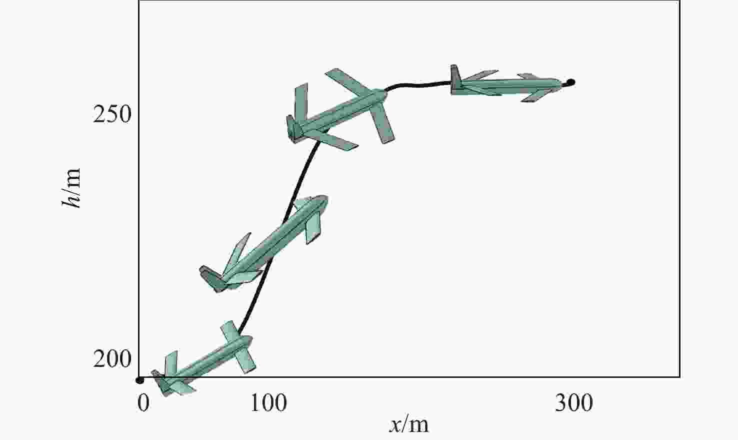 参数 数值 飞行器总质量m/kg $1.668$ 质心与机翼旋转中心间距l/m $0.140$ 面Oxz与前翼旋转中心间距ac/m $0.165$ 面Oxz与后翼旋转中心间距aw/m $0.235$ 面Oxz与机翼旋转中心间距bf/m $0.040$ 机翼质量ma/kg $0.080$ 翼展b/m $0.893$ 平均气动弦长ca/m $ 0.077 $ 前后翼间距St/m $0.420$ 翼面积Sm/m2 $0.135$ 表 2 奖励函数参数