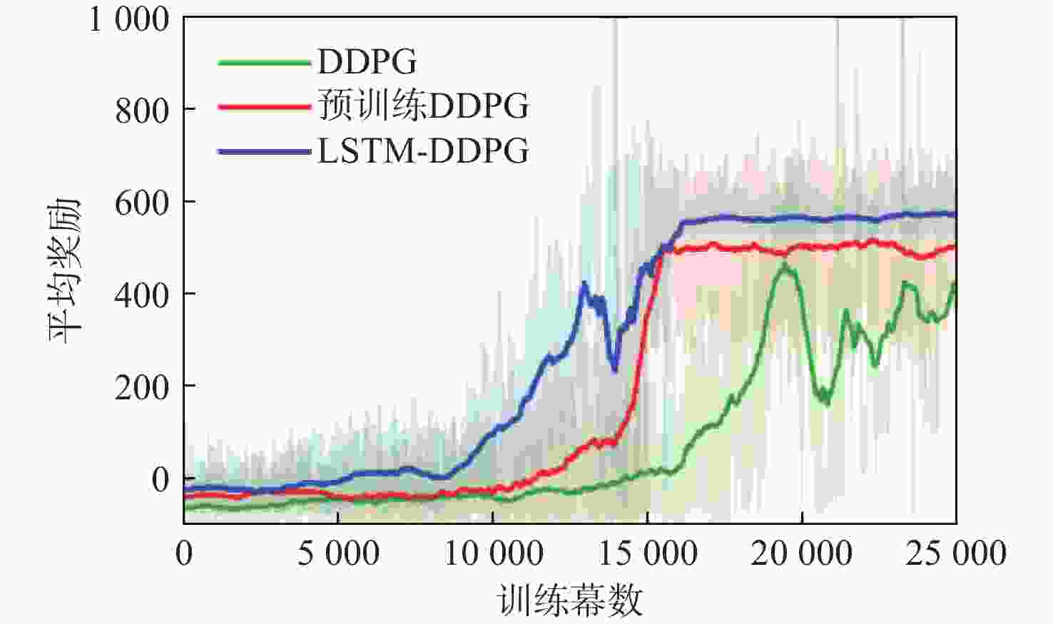 超参数 数值 目标网络更新率 0.001 Actor网络学习率 0.0001 Critic网络学习率 0.001 经验回放池容量 ${10^6}$ 小批量样本数 256 折扣因子 0.991 最大幕数 80000 最大步数 800 采样时间/s 0.02 -