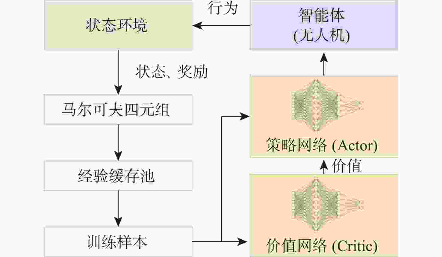 针对无人机(UAV)在应急场景中执行数据采集任务时,其电池容量有限、缓存空间有限,以及地面目标优先级动态变化所导致的无人机航迹规划与资源分配效果较差的问题,提出一种基于深度强化学习的无人机航迹规划与资源分配联合优化方法。考虑无人机任务中的通信、计算、飞行、数据缓存过程,构建相应的数学问题模型;针对无人机航迹规划与资源分配问题构建马尔可夫过程模型,设计相应的状态和行为描述及用于平衡无人机能耗和数据采集信息量的加权奖励函数;与贪婪算法和遗传算法等智能优化方法进行仿真对比。结果表明:所提方法能够使无人机在较短的任务时间内,以消耗相似或者较低的能量为代价,较大提升对地面用户的数据采集量。