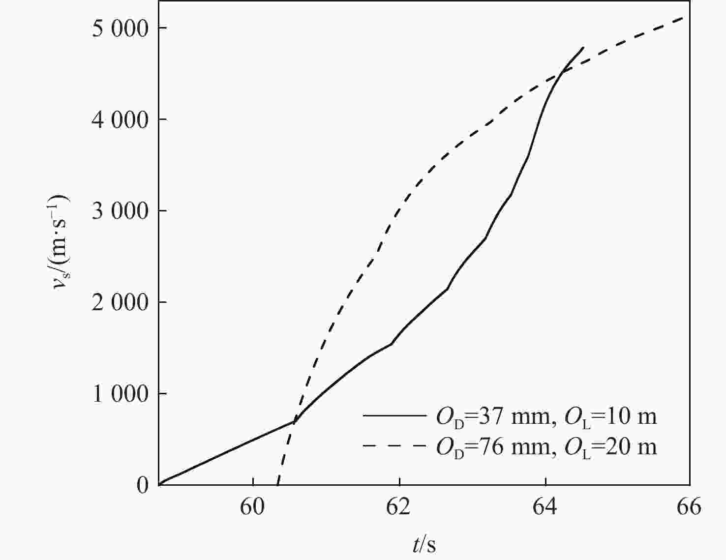 针对超高速发射技术中弹丸速度与能量转换效率的优化问题,采用经典内弹道模型对一维非定常可压缩流动下药室内火药燃烧状态、活塞运动和气室内气体流动状态、弹丸运动进行研究。药室部分通过四阶Runge-Kutta算法求解,气室部分求解Euler方程并采用WENO格式进行高精度激波捕捉。分别对不同初始注气条件、气室尺寸、发射管尺寸、火药质量下的二级轻气炮进行数值模拟,得到相关参数对轻气炮性能影响规律。研究发现:泵管内轻质气体能明显提高轻气炮的性能,气室尺寸、管径及长度对活塞底部压力和速度影响较大,但对弹丸速度影响较小;增加火药质量、发射管尺寸及管径可显著增大弹丸出膛速度;为新型二级轻气炮的设计制造提供重要理论和数据支撑。