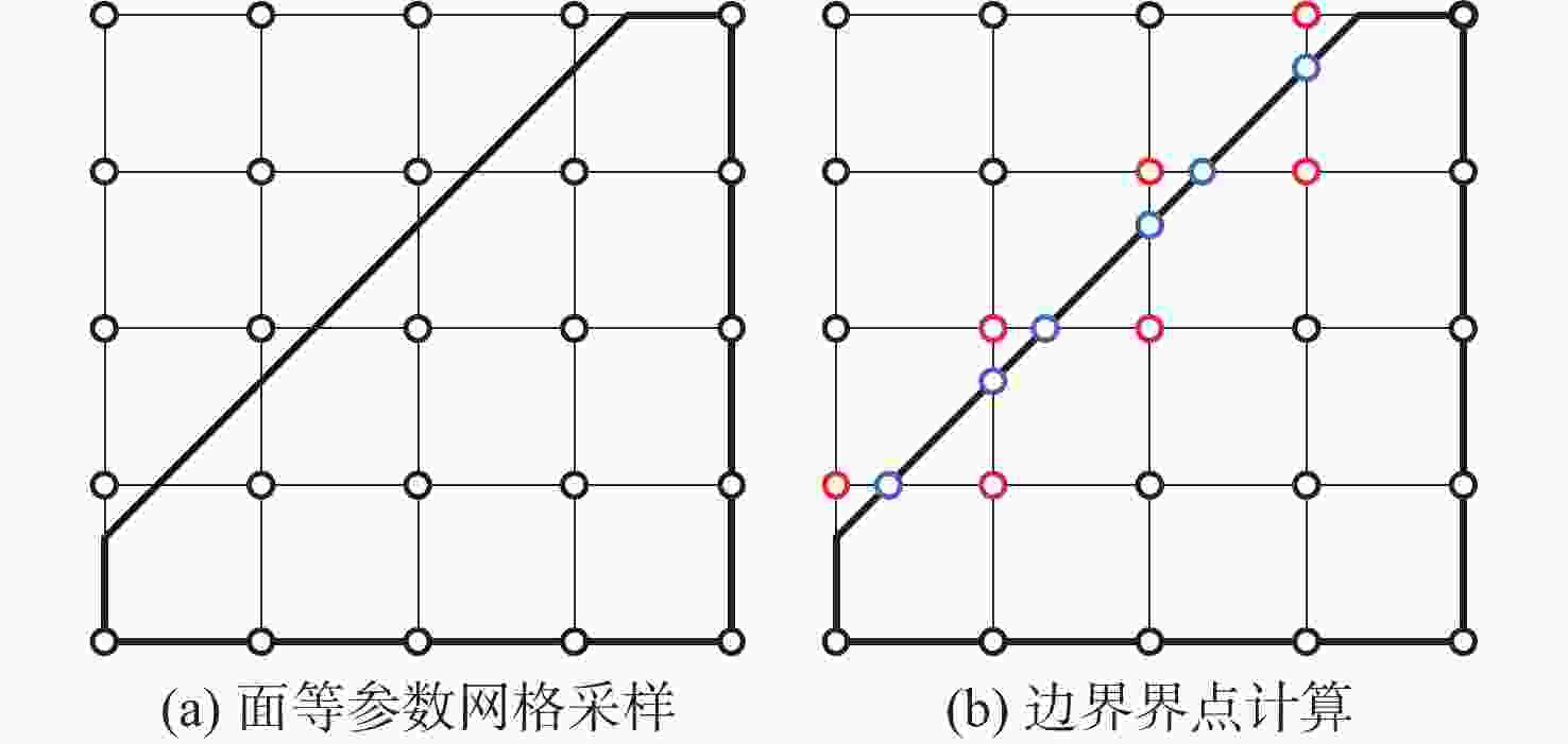 基于界点跟踪的曲面等值分割方法具有通用性,但复杂曲面等值分割效率较低。为此,提出曲面等值分割几何认知计算方法。对输入面进行等参数网格采样并计算边界界点;从采样点中提取界算组并计算、识别界点;从界点中提取界点组并构造、识别界边;从界边中提取、识别内界环,以此分割输入面并对所得等值面进行识别。以主曲率、高斯曲率、平均曲率和可加工性为面点属性设计分割条件集并进行大量实例测试。实验结果表明:所提方法的分割效率比现有方法平均提高了38.44%,所提方法在复杂曲面分割应用中具有较高的分割效率。