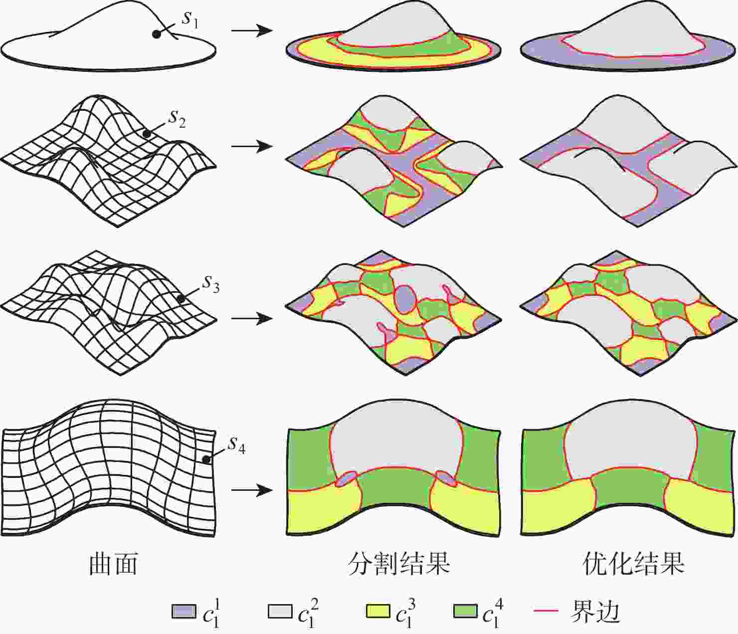 Table 5. Surface segmentation data comparison for $ {s_{i}} $ (according to C2)