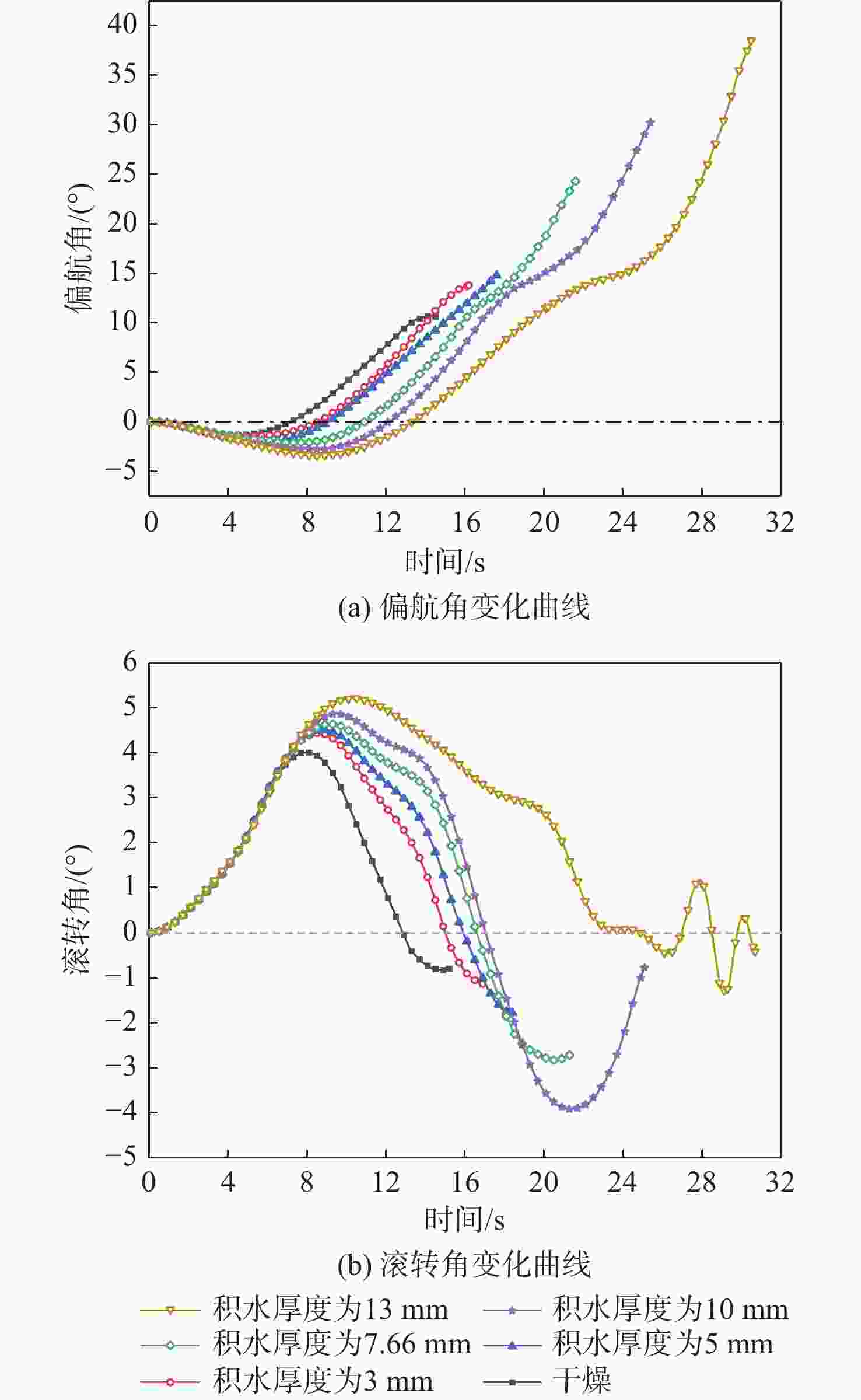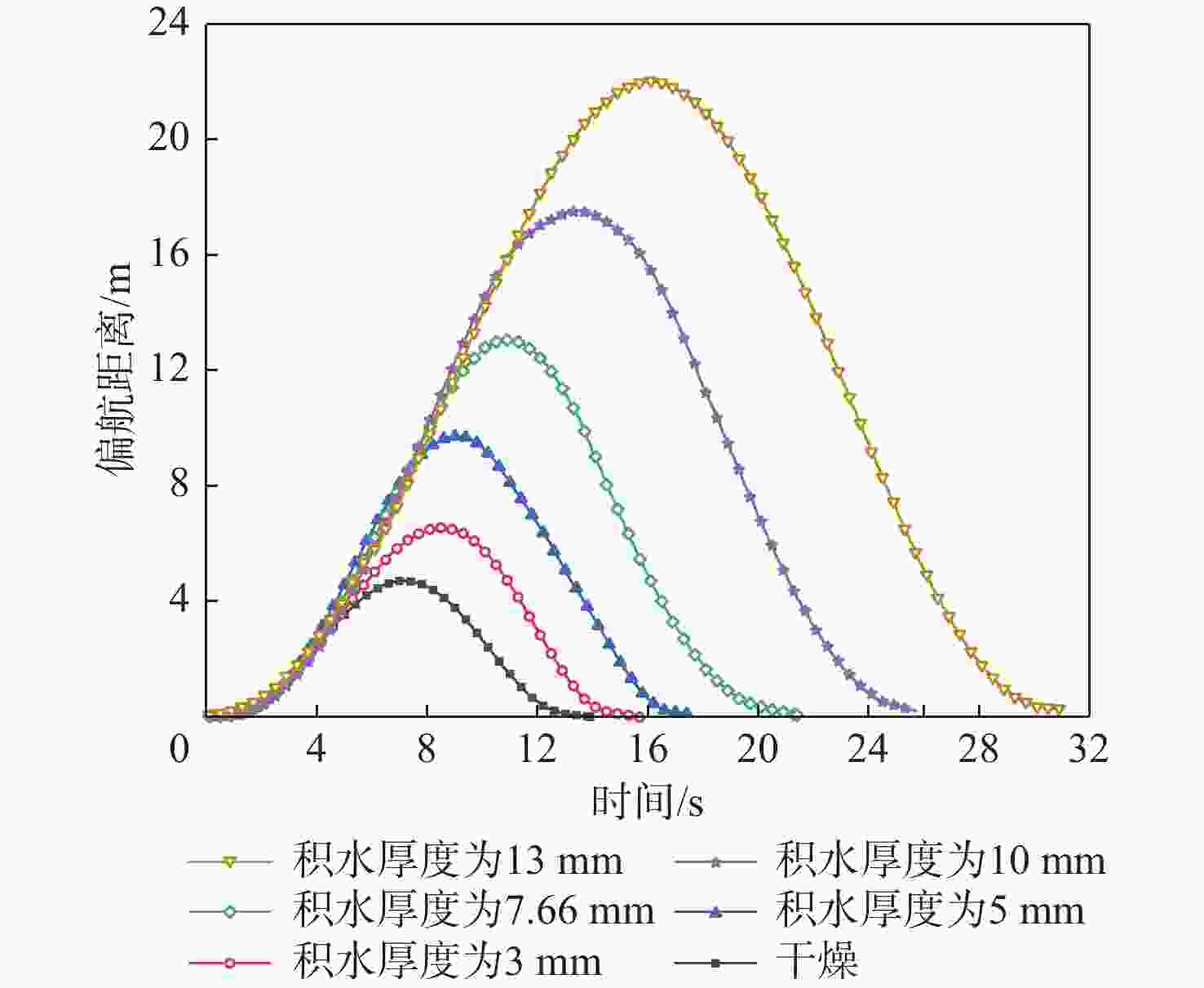 积水厚度/mm i 0(干燥) −0.3×10−3 3 −0.9×10−3 5 −2.1×10−3 7.66 −2.9×10−3 10 −3.1×10−3 13 −4.1×10−3 表 2 侧向摩擦系数参数