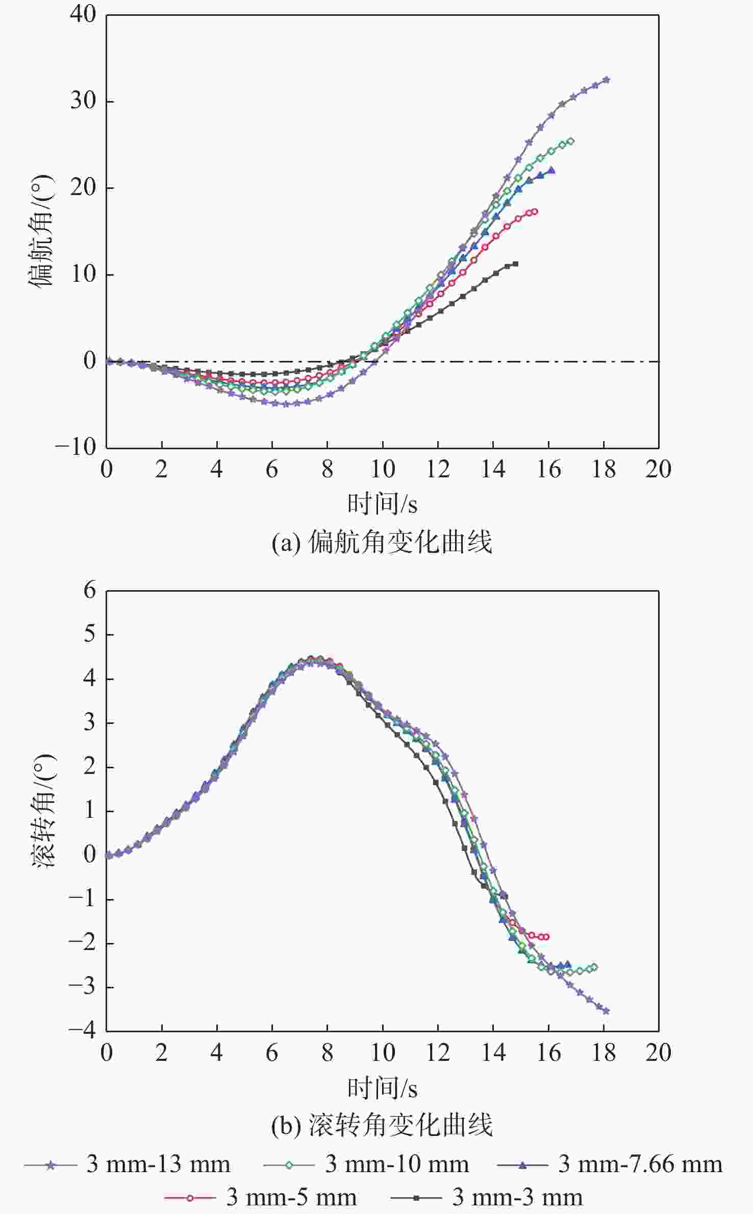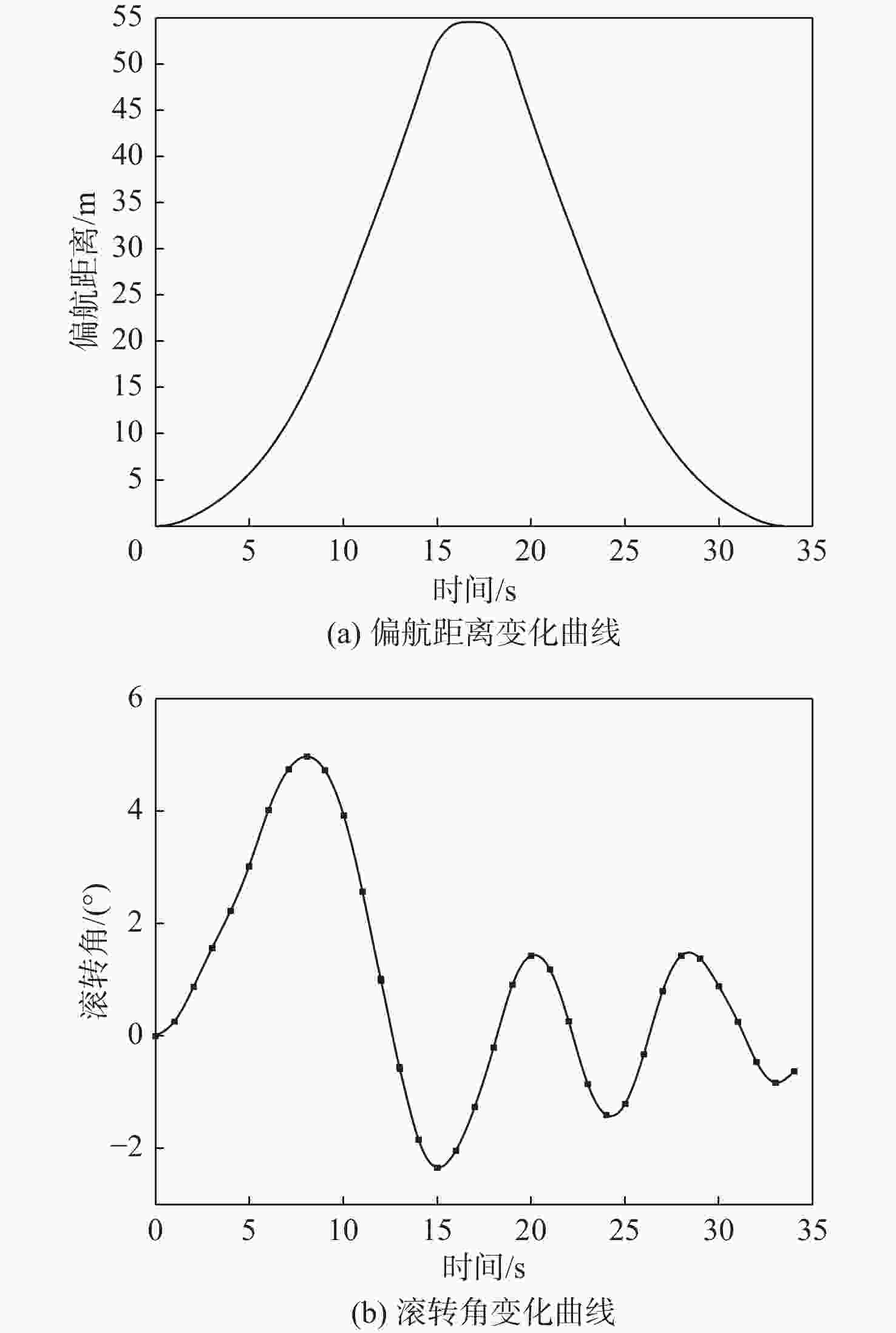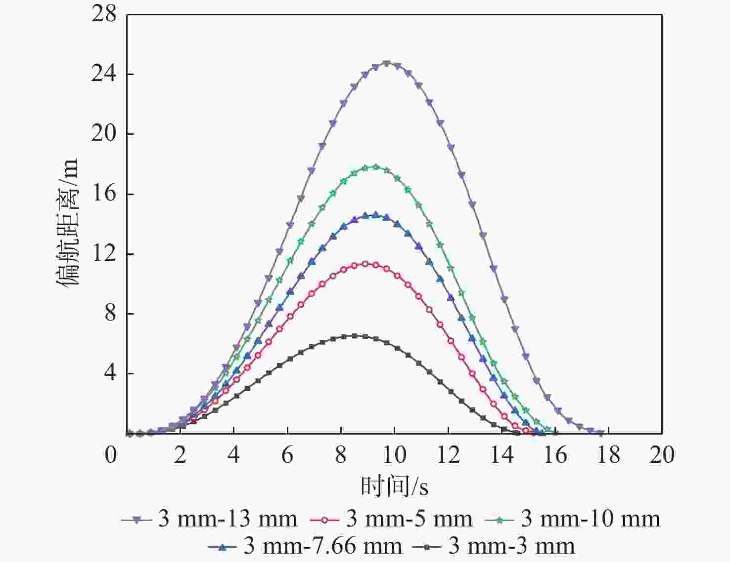 侧风强度/(m·s−1) 滚转角差值/(°) 3.4 0.35 5.5 0.33 8.0 0.31 10.8 0.23 13.9 0.18 17.2 0.16 表 9 不同侧风强度下偏航距离峰值