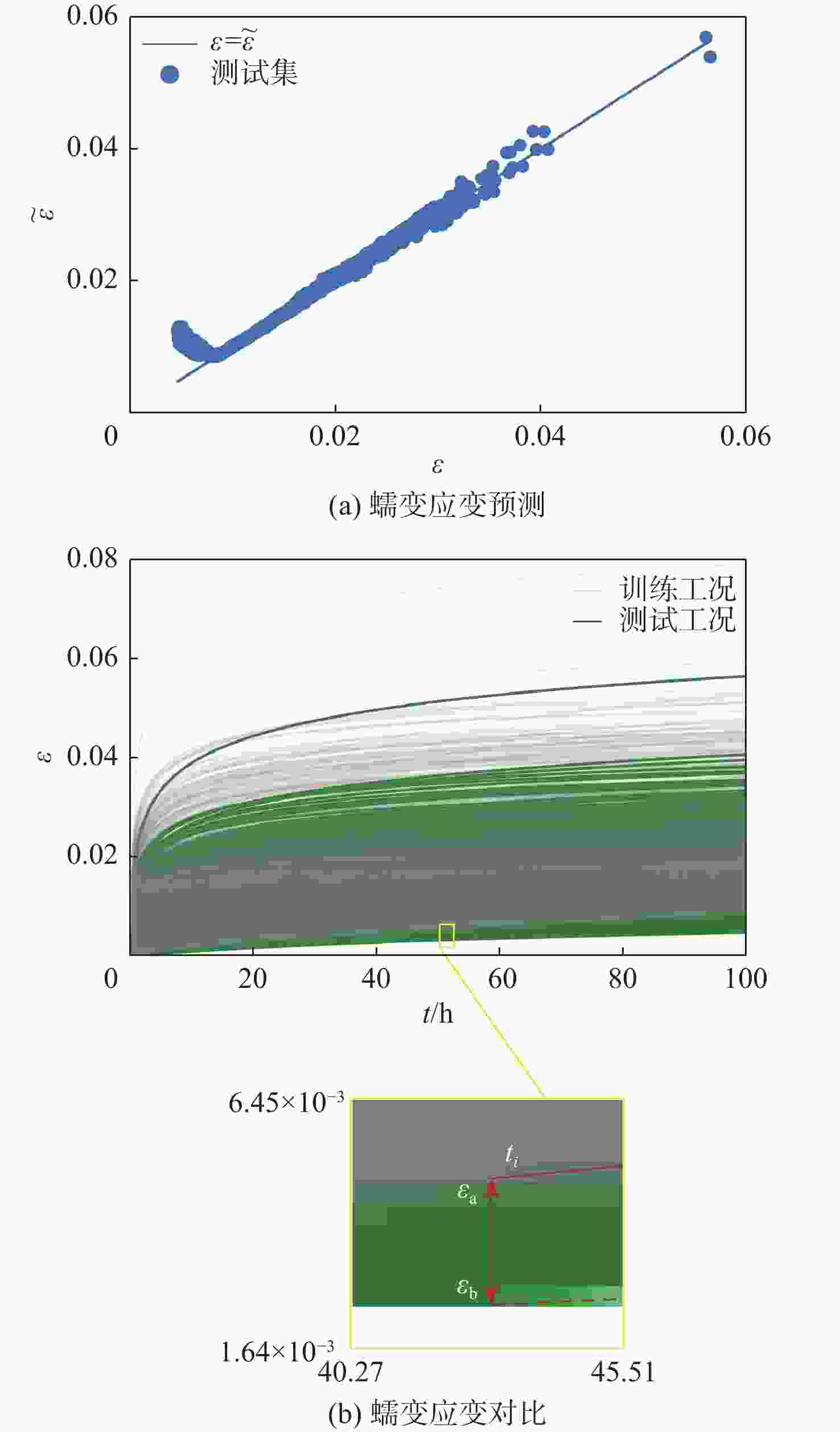 蠕变模型种类 蠕变本构方程 适用阶段 应变强化模型 $ \dot \varepsilon = {C_1}{\sigma ^{{C_2}}}{\varepsilon ^{{C_3}}}{{\mathrm{e}}^{ - {C_4}/T}} $ 第1阶段 时间强化模型 $ \dot \varepsilon = {C_1}{\sigma ^{{C_2}}}{t^{{C_3}}}{{\mathrm{e}}^{ - {C_4}/T}} $ 第1阶段 修正的应变