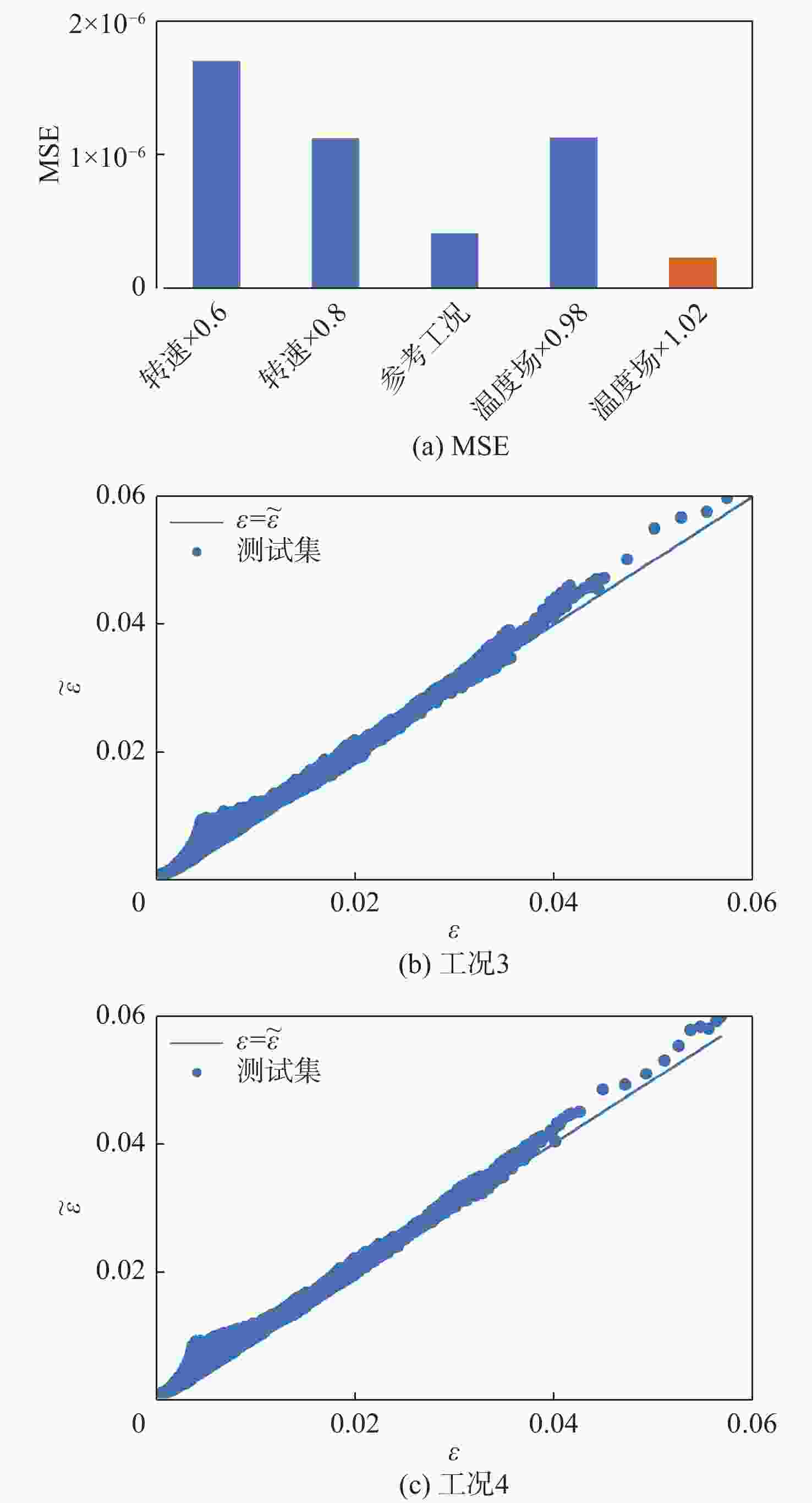 工况 温度场/℃ 转速/(r·min−1) 工况0 1×1.00 1×1.00 工况1 1×0.98 1×1.00 工况2 1×1.02 1×1.00 工况3 1×1.00 1×0.60 工况4 1×1.00 1×0.80 表 3 不同工况涡轮叶片网格节点蠕变应变范围