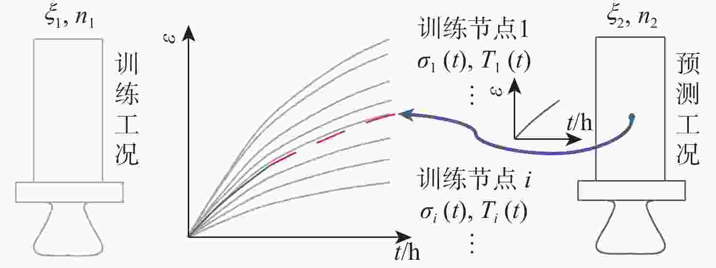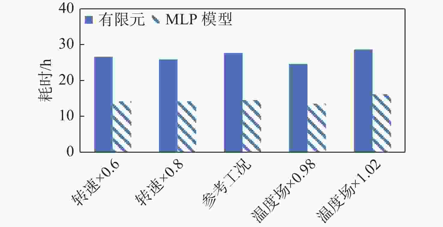 工况 蠕变应变范围 工况0(温度场×1.00,转速×1.00) 0~ 0.0704 工况1(温度场×0.98) 0~ 0.0564 工况2(温度场×1.02) 0~ 0.0791 工况3(转速×0.6) 0~ 0.0566 工况4(转速×0.8) 0~ 0.0636 -