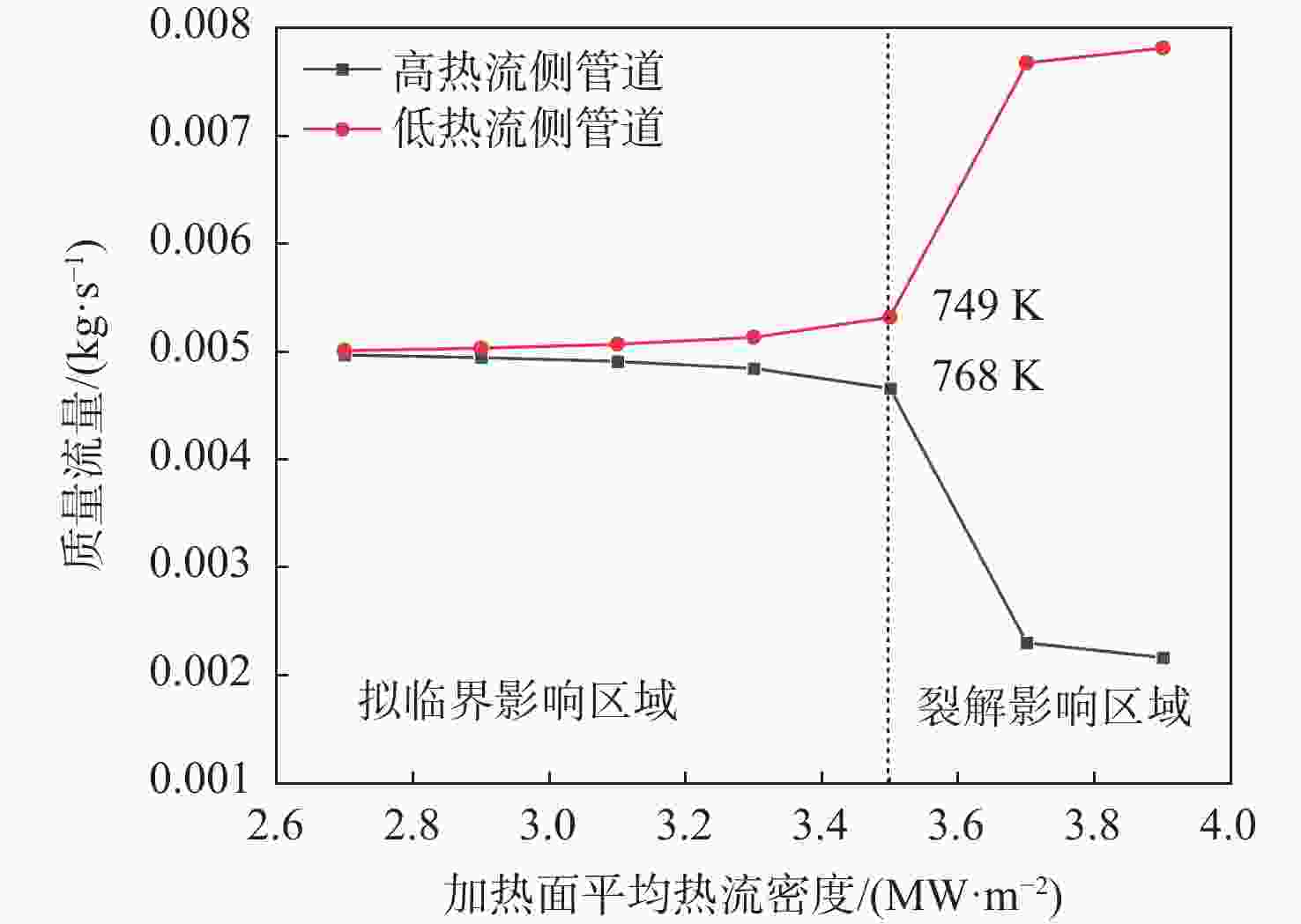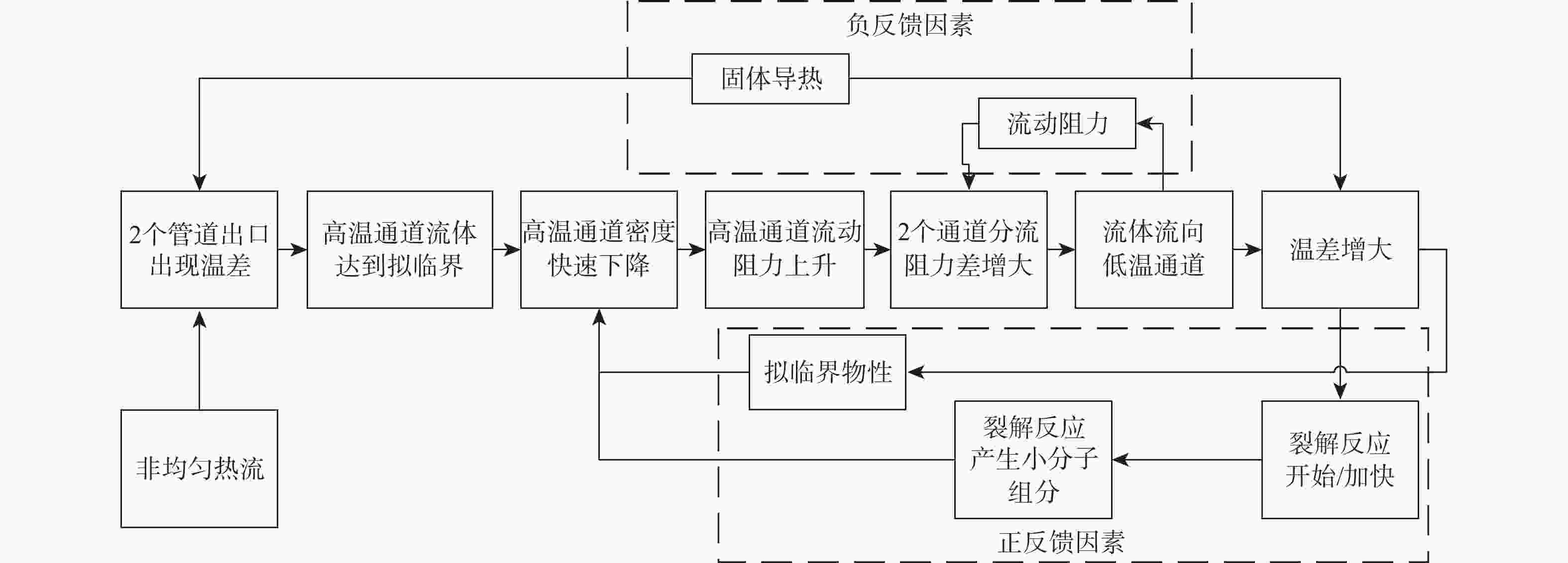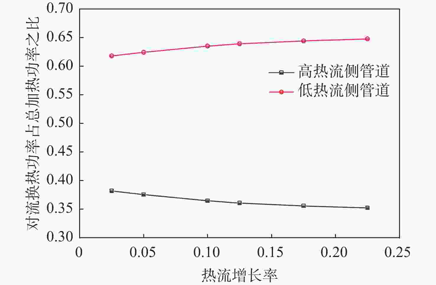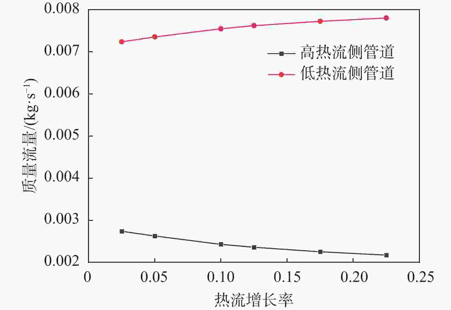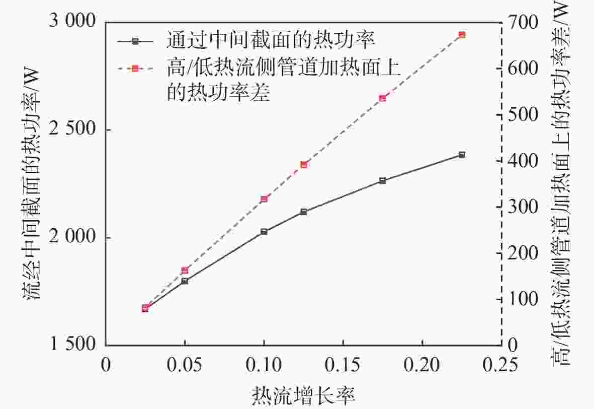 为研究线性非均匀加热下超临界燃油在并联双管中的质量流量分配特性,通过瞬态模拟超临界燃油RP-3流经并联双管的流动过程,探究质量流量分配特性的影响因素及其作用机理;通过稳态模拟平均热流密度在2.7~3.9 MW/m2、热流增长率在0.025~0.225范围内的质量流量分配特性,研究不同非均匀加热条件对质量流量分配特性的影响。结果表明:拟临界状态、裂解反应、固体导热、分流阻力差是影响质量流量分配特性的主要因素;拟临界状态正反馈、裂解反应正反馈会增大双管间的质量流量偏差;固体导热负反馈、分流阻力差负反馈会减小双管间的质量流量偏差。裂解反应正反馈被激活的必要条件是总加热功率可使全部冷却工质达到裂解温度。保持平均热流密度3.7 MW/m2不变,热流增长率增大了8倍,质量流量相对标准差增大了11%。非均匀加热条件主要起质量流量分配偏差的诱导作用,对最终质量流量分配特性的影响较小。