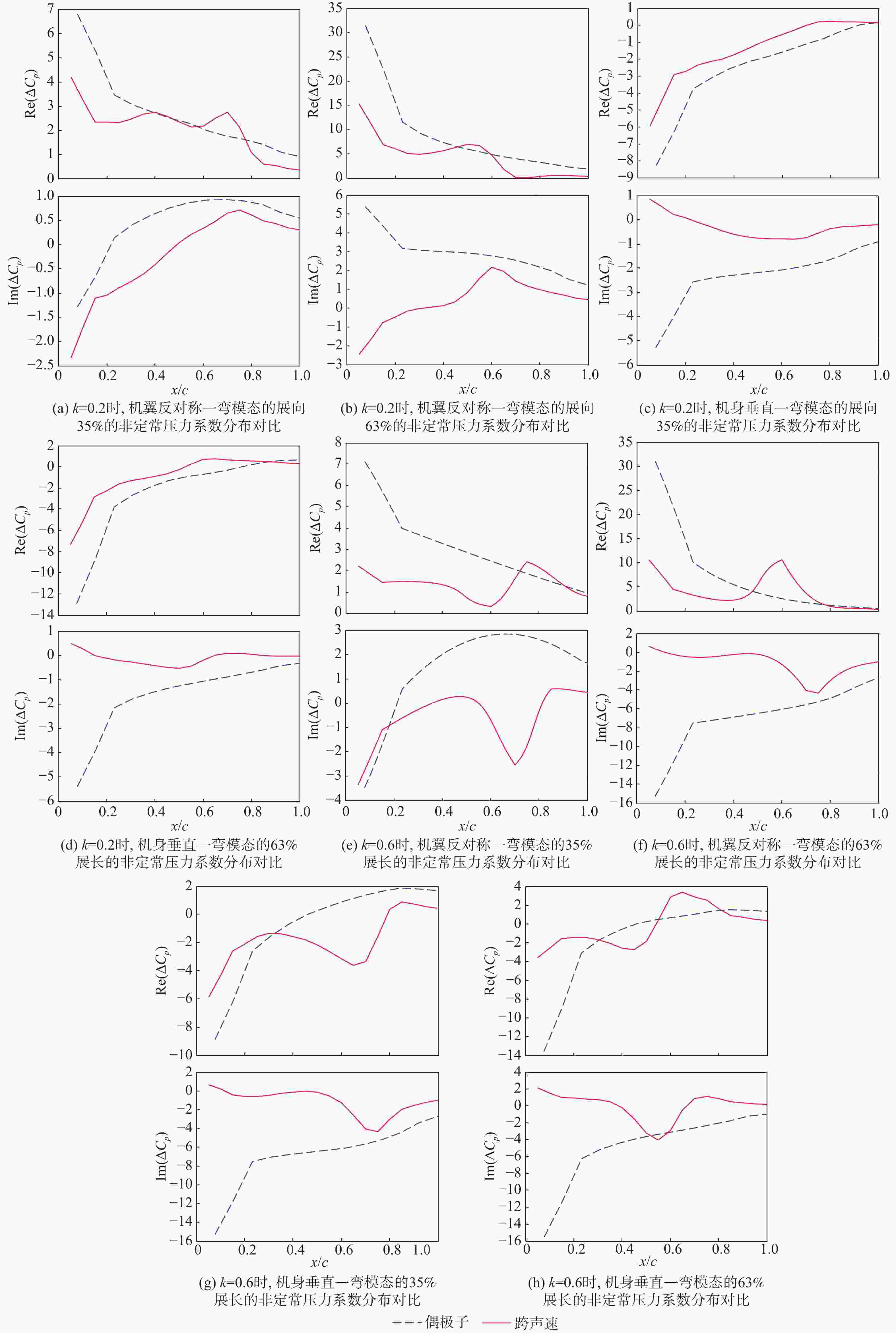 与亚声速相比,民用飞机进入跨声速飞行时,其气动伺服弹性特性出现明显的频率偏移和稳定裕度下降等问题。对于研发阶段的飞机而言,研发成本昂贵、试飞风险高、设计更改周期长,故在初步设计阶段需充分考虑跨声速区域的气动伺服弹性设计。采用偶极子格网法计算的非定常气动力无法考虑跨声速激波和边界层的影响。针对跨声速非定常气动力计算,将非定常小扰动速度势分为定常项和非定常项,通过计算流体力学求解跨声速定常项,使用非定常流场面元法求解时间线化的跨声速小扰动速度势方程来计算非定常项。将得到的跨声速非定常气动力影响系数代入气动伺服弹性机体频响函数中,并与试飞结果、偶极子气动力模型计算结果进行对比,结果表明:基于叠加流场面元法的跨声速气动伺服弹性分析在频率和稳定裕度等方面与试飞结果更吻合。探索跨声速区域传递函数频率和稳定裕度变化规律,为民用飞机跨声速气动伺服弹性设计提供方法。