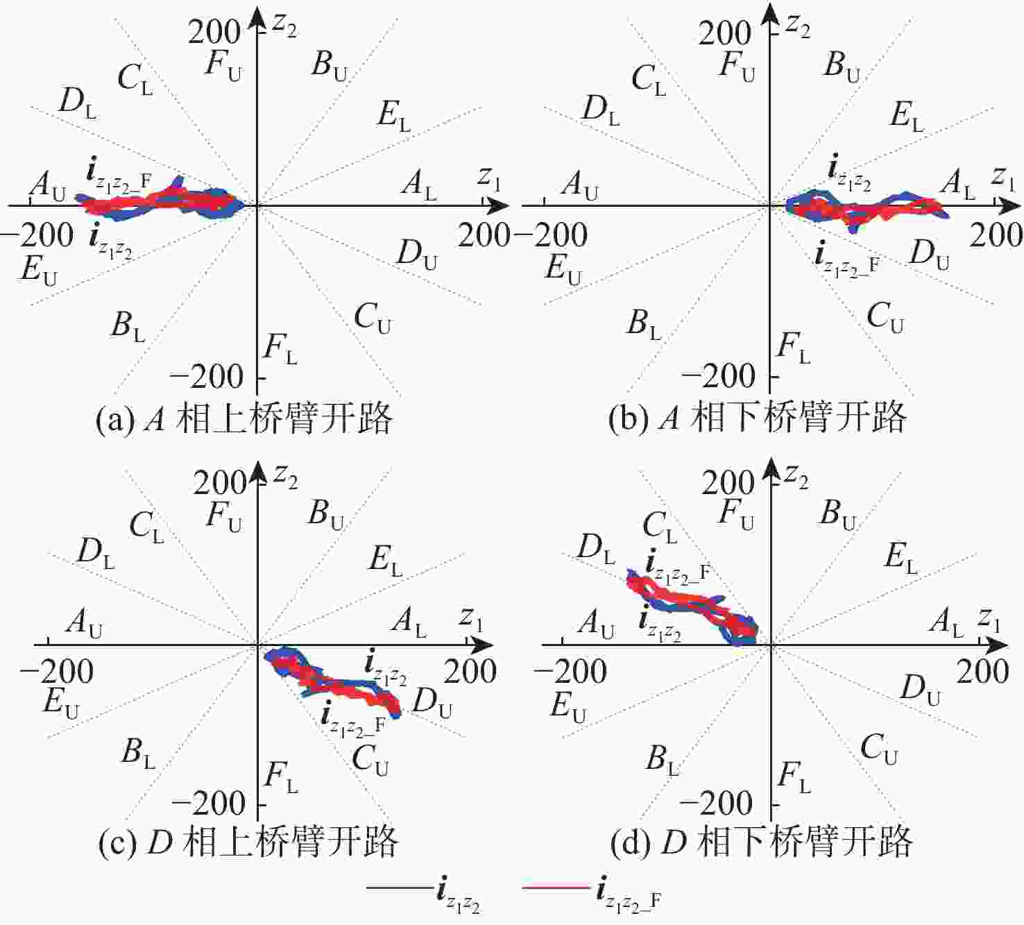 图 14 单相单管开路故障情况下${{\boldsymbol{i}}_{{\textit{z}}_1{\textit{z}}_2}} $与${{\boldsymbol{i}}_{{\textit{z}}_1{\textit{z}}_2\_ {\mathrm{F}}}} $电流轨迹