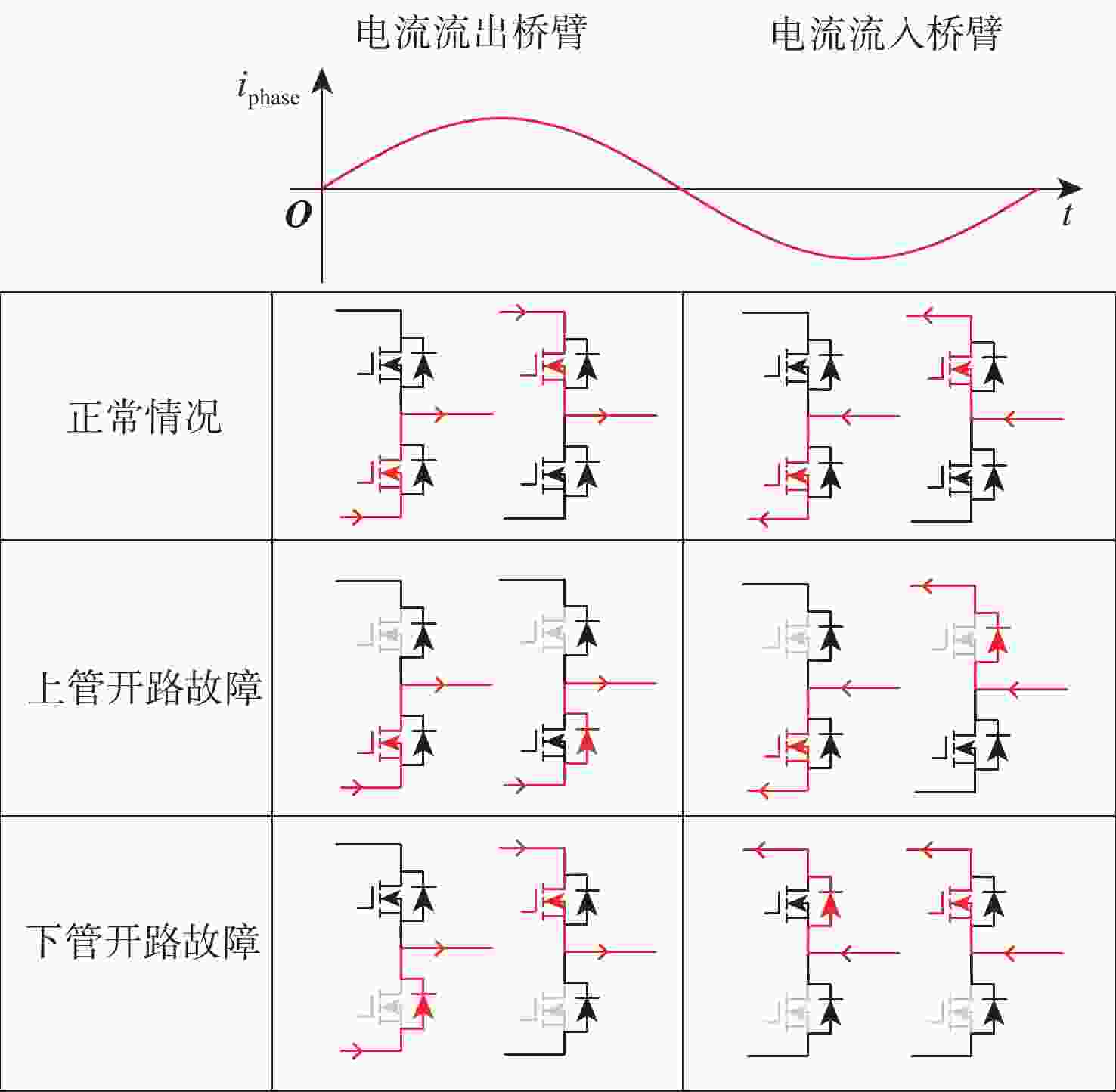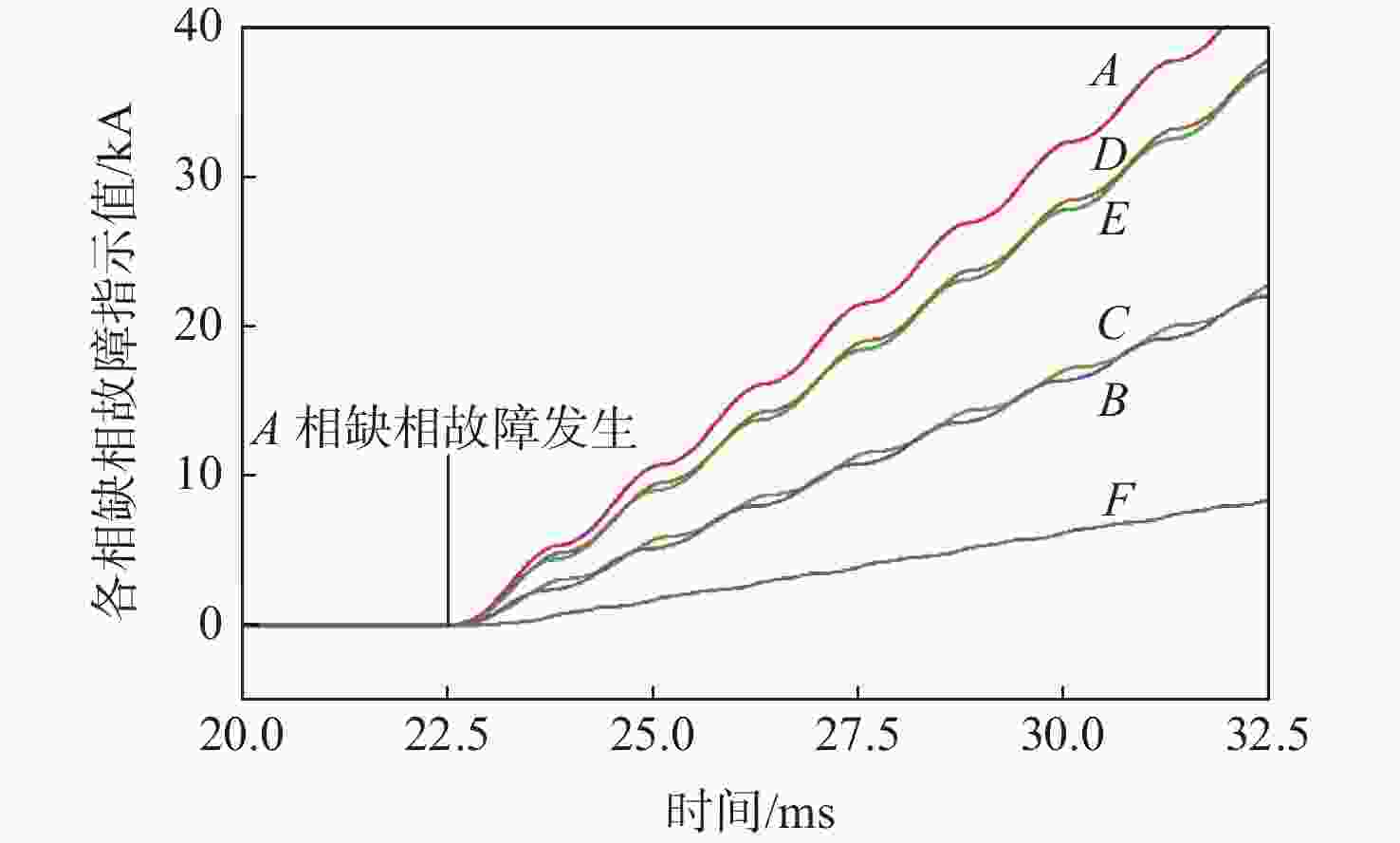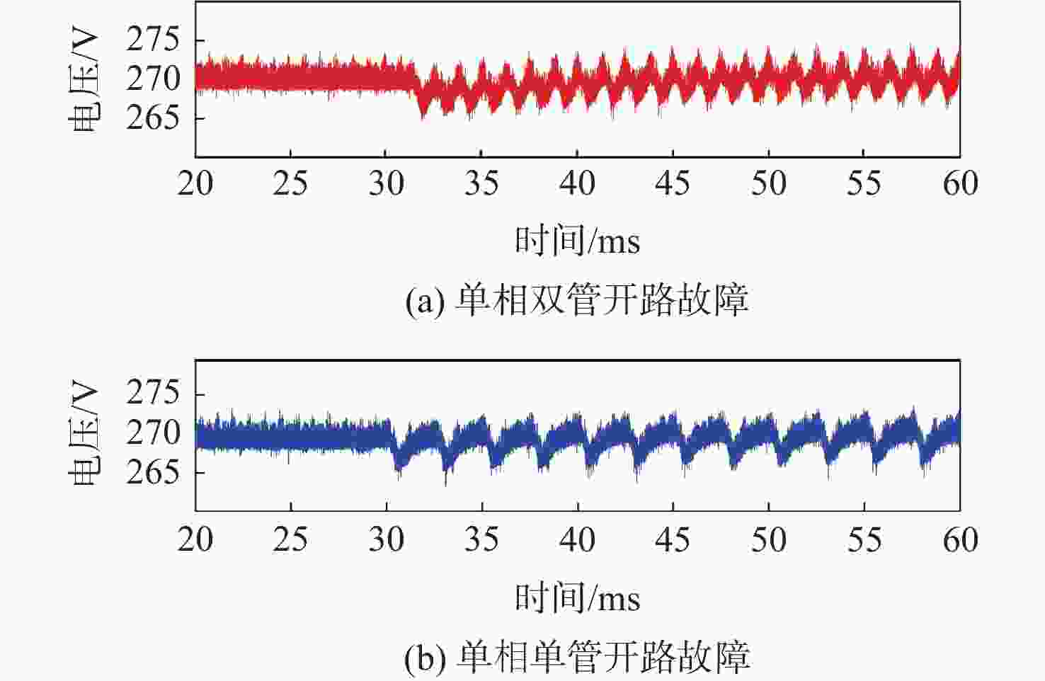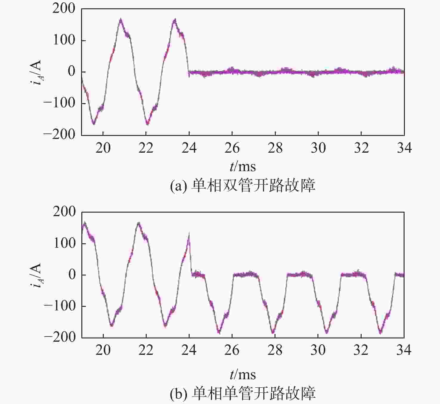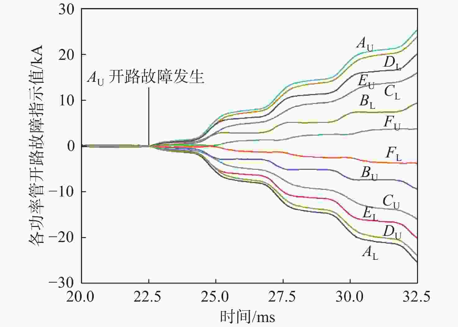 最大值 单相双管开路故障位置 $ \displaystyle\sum {\left| {{i_{{\textit{z}}_1\_{\rm F}}}} \right|} $ A $ \displaystyle\sum {\left| {{i_{{\textit{z}}_1\_{\rm F}\_{{30}^ \circ }}}} \right|} $ E $ \displaystyle\sum {\left| {{i_{{\textit{z}}_1\_{\rm F}\_{{60}^ \circ }}}} \right|} $ B $ \displaystyle\sum {\left| {{i_{{\textit{z}}_1\_{\rm F}\_{{90}^ \circ }}}} \right|} $ F $ \displaystyle\sum {\left| {{i_{{\textit{z}}_1\_{\rm F}\_{{120}^ \circ }}}} \right|} $ C $ \displaystyle\sum {\left| {{i_{{\textit{z}}_1\_{\rm F}\_{{150}^ \circ }}}} \right|} $ D 表 2 单相单管开路故障定位