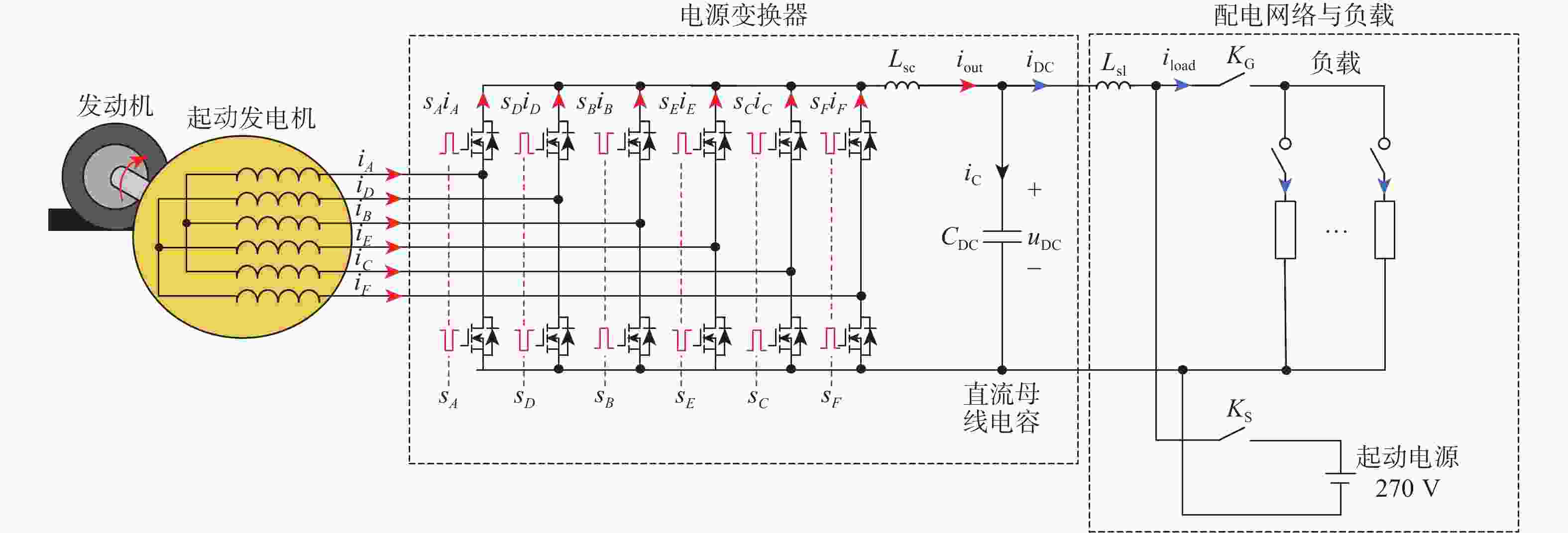 z 1-z 2坐标系电流和直流母线电压的功率管单相开路故障诊断与定位方法。采用空间矢量解耦方法建立电机本体和电源变换器模型;基于该模型分析电源变换器单相单管和单相双管开路故障特性及其在z 1-z 2坐标系电流轨迹和直流母线电压上反映出的故障特征;提出基于z 1-z 2坐标系电流和直流母线电压的单相单管及单相双管开路故障诊断与定位方法,检测故障发生,确定故障位置。通过实验平台验证所提方法的有效性,结果表明:所提方法可对电源变换器单相开路故障进行诊断与定位,进而为故障发生后的容错运行提供指导。Abstract:The aerospace dual three-phase permanent magnet assisted synchronous reluctance starter-generator system’s power converter had an open-circuit fault diagnosis issue. To address this, a single-phase open-circuit fault diagnosis and localization method for power tubes based on the bus voltage and