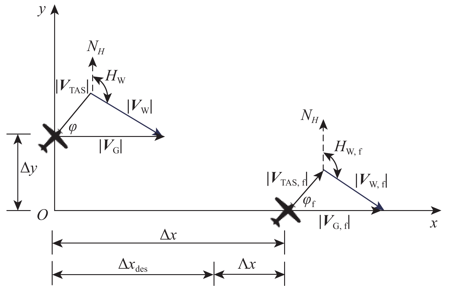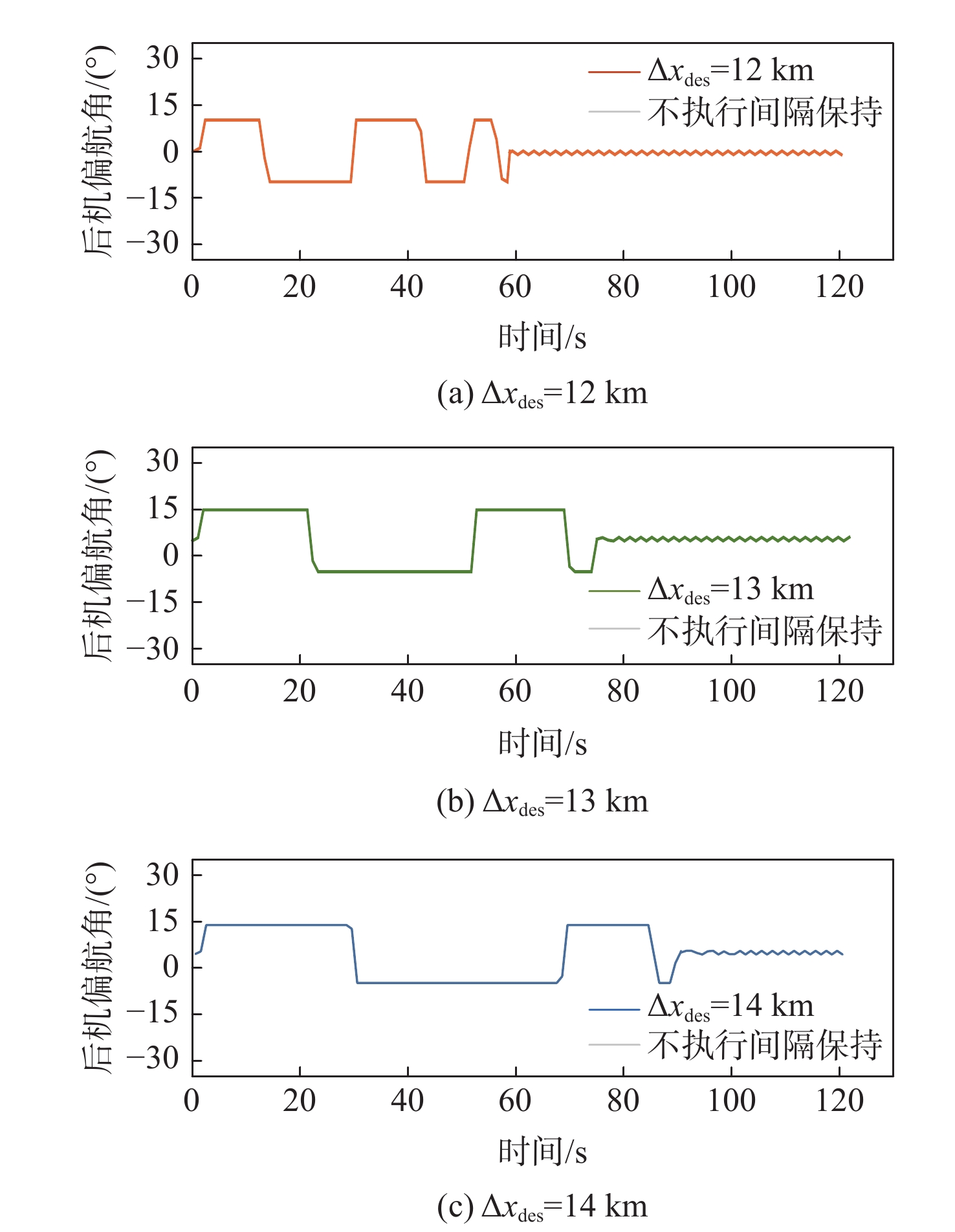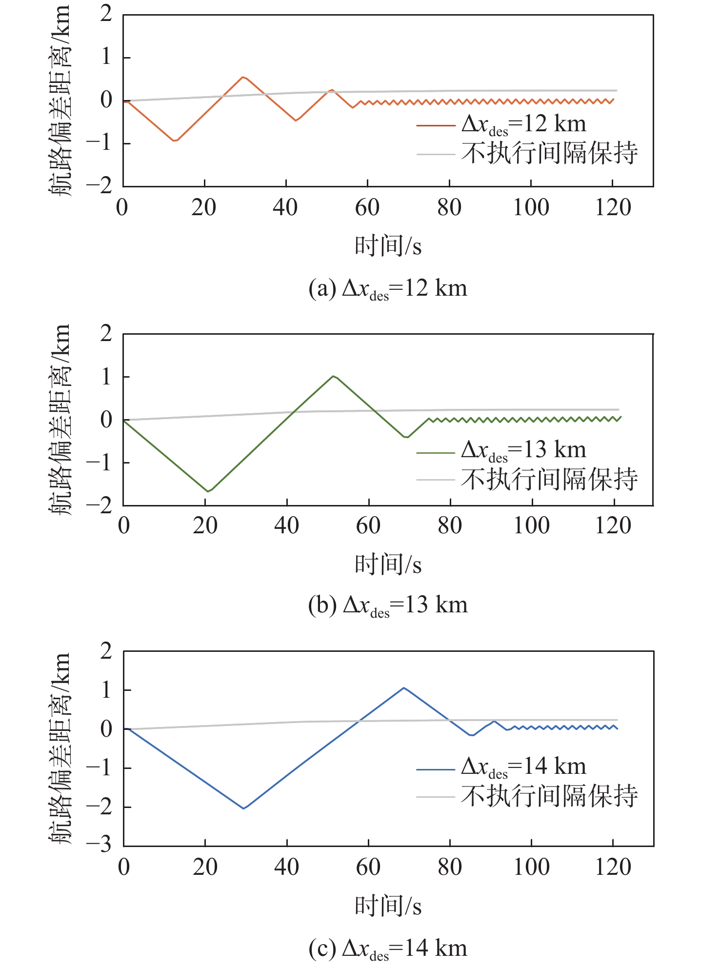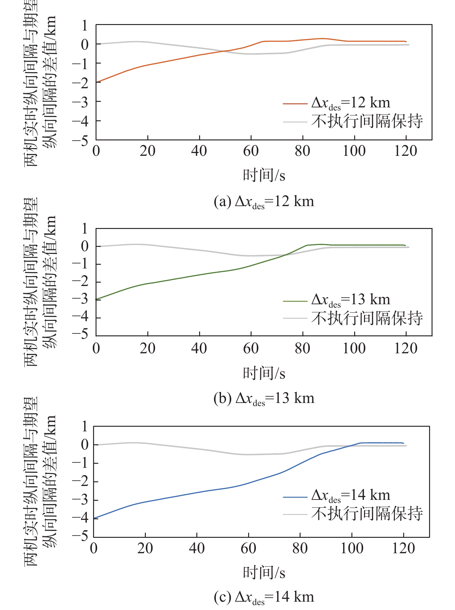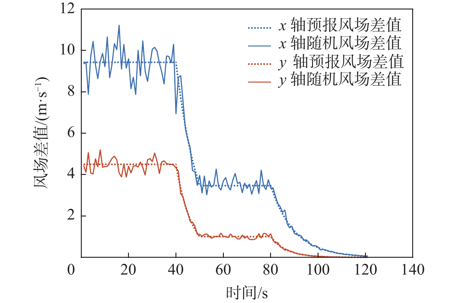 In view of the fact that the high altitude wind, a random factor, often leads to poor robustness of the longitudinal separation between two aircraft in the longitudinal autonomous separation maintenance problem under the random disturbance of track, this paper proposed a longitudinal autonomous separation control method based on model predictive control (MPC). Firstly, the linear time-varying prediction model was developed by establishing the nonlinear kinematics differential equation of the longitudinal separation and the wind field difference between the two aircraft. The longitudinal separation and route deviation distance of the two aircraft was selected as the optimization objectives, the vacuum speed and yaw angle of the front aircraft were taken as the measurable disturbances, and the high-altitude wind was the random disturbance. Terminal equality constraints were added to the air safety and aircraft performance constraints to maintain the stability of the system. To verify the effectiveness of the proposed method, within the specified 120-second simulation time, this article set three sets of different expected separations of 12 km, 13 km, and 14 km. Through the design of an MPC controller, the vacuum speed and yaw angle of the following aircraft were controlled during the rolling time domain cycle. The separation curve between the two aircraft is relatively smooth and always not less than the minimum safety separation of 10 km. It stabilized at the expected target separation in the 74th second, 90th second, and 118th second, and returned to the route starting from the 58th second, 74th second, and 95th second. Two sets of wind field control groups were set up. Two times as much wind was forecast in one group, while eight times as much turbulent wind was disturbed in the other. Both groups were able to establish the expected interval of 12 km smoothly and stably in the 61th second and 72th second, respectively.