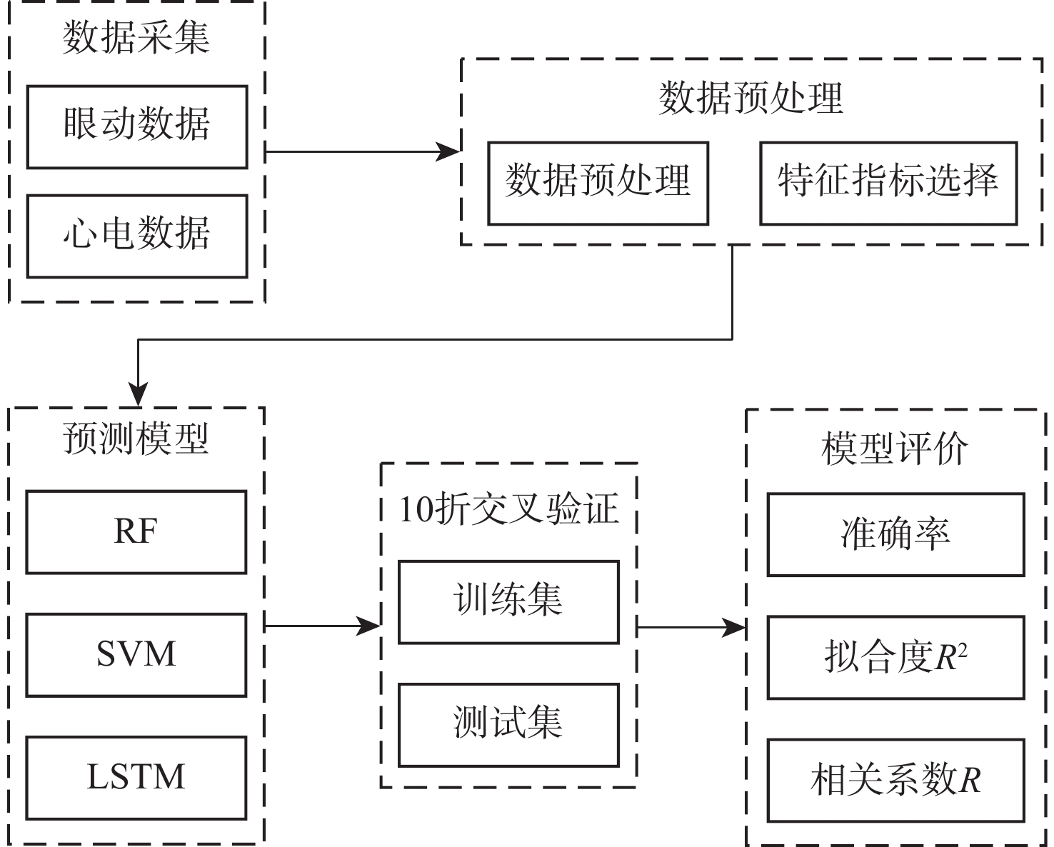 Real-time monitoring and evaluation of air traffic controllers’ cognitive load is of great significance to the operational safety of the air traffic control system. Cognitive load variation in control command, which is reflected by the physiological parameters, facilitates timely discovery of the undesirable working condition that affecting control effectiveness, in order to realize forward movement of the risk control gate. The radar control simulation experimental platform is used to create conflict detection scenarios under various airspace complexity conditions. A repeated within-subjects measurement experimental scheme is designed with three factors: minimum distance (4 km, 12 km, 16 km), convergence angle (45°, 90°, 135°), and speed characteristics (fast speed priority, same speed, slow speed priority). The effect of different complexity factors on the cognitive load and the changing laws of physiological indexes are studied based on multifactorial analysis of variance through collecting the subjects' eye movement and electrocardiogram data, so as to select feature physiological indexes that can effectively express airspace complexity factors. Based on this, the individuals' cognitive load is assessed using three machine learning algorithms: random forest (RF), support vector machine (SVM), and long short-term memory network (LSTM). The results show that among different levels of the same type factor, the cognitive load is highest when the minimum distance (MD) is closed to the warning interval and the convergence angle (CA) is an acute angle, as well as lowest when the speed characteristics (SC) is the same speed respectively. Nine physiological indexes can be used as feature indexes to effectively express cognitive load at different levels of MD, including number of fixations (NrF), number of saccades (NrS), mean saccade duration (SD), average saccade amplitude (SA), average saccade peak velocity (SPV), blinking frequency (BF), pupil diameter (PD), mean respiratory rate (RR) and power ratio of low-frequency to high-frequency in heart rate variability (LF/HF). The assessment accuracy of the SVM model based on a single-modal eye movement signal is 94.69%, which is higher than the single-modal assessment model with electrocardiographic signal and the dual-modal assessment model with eye movement and electrocardiographic signals. Removing strongly correlated feature indexes will affect model performance to some extent.