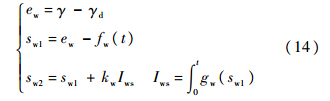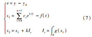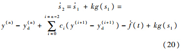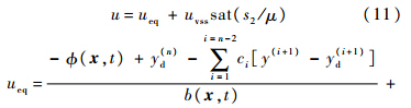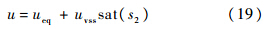 设计控制输入,保证第2级滑模切换函数s2收敛,进而迫使系统输出跟踪参考指令yd.设计如下的等效控制加鲁棒切换项的控制律: