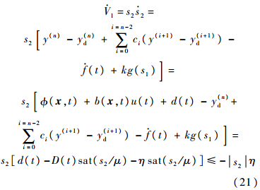 证明 若滑模变量s2在边界层外,则式(11)转化为