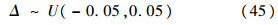 实际空投拉平过程中,由地面效应和传感器测量误差引起的模型摄动以及外界大气扰动是变化的,因此令式(39)、式(40)中的不确定性Δ服从如下的均匀分布: