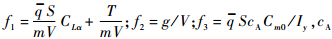 为机翼面积,Iy为绕横轴惯性矩,m为载机与货物总质量,V为空速,T为发动机推力,ρ为空气密度.