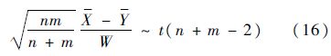 设X1,X2,…,Xn是来自N(μ1,σ2)的样本,Y1,Y2,…,Ym是来自N(μ2,σ2)的样本,原假设H0∶μ1=μ2,备选假设H1∶μ1≠μ2,建立如下t统计量