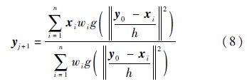 当前帧中位置y0处候选目标特征为pu(y0),根据Mean Shift理论[5],目标中心的迭代式为