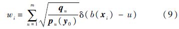 同理,对于候选目标也可以采用同样的方法进行描述.设候选目标像素集合为{xi}i=1,2,…,n,中心位置为yc,则候选目标的量化特征概率密度分布可描述为