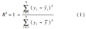 采样点必须大于等于多项式的项数.当采样点大于多项式的项数时,式(2)为超定方程,需要利用回归技术对响应面进行拟合.在这种情况下,响应面通常不可能在每个样本点得到精确解.最小二乘拟合常被用于构造响应面.在利用响应面进行结果估计和模型修正之前,必须对响应面的拟合度进行检验.R2准则再次用来检验响应面拟合度.R2越接近于1,表明响应面拟合度越高,利用响应面估计得到的计算结果也就越准确.