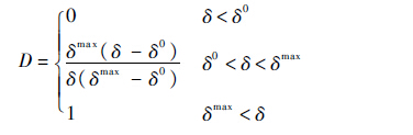 | 图 8 胶层材料线弹性-线性软化本构模型 Fig. 8 Linear elastic-linear softening constitutive model of cohesive material |