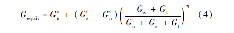 胶层单元最终破坏采用基于能量的BK-Law混合模式线性刚度衰减模型[14]: