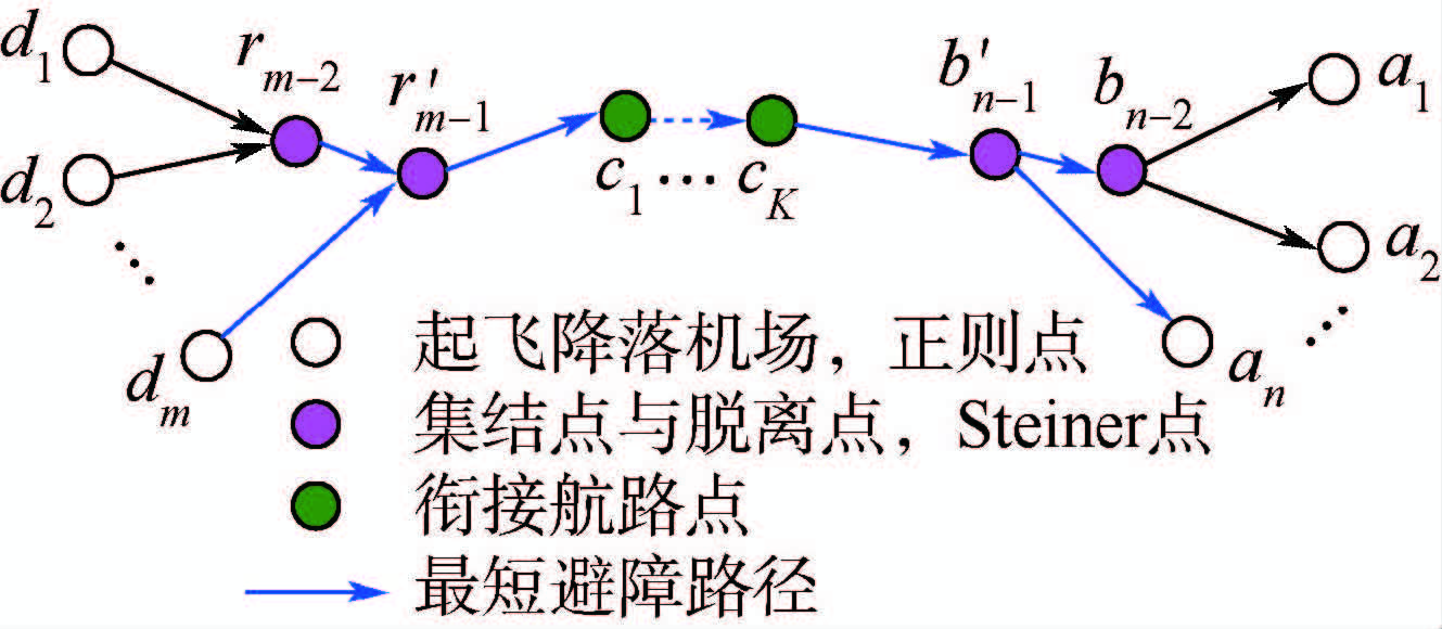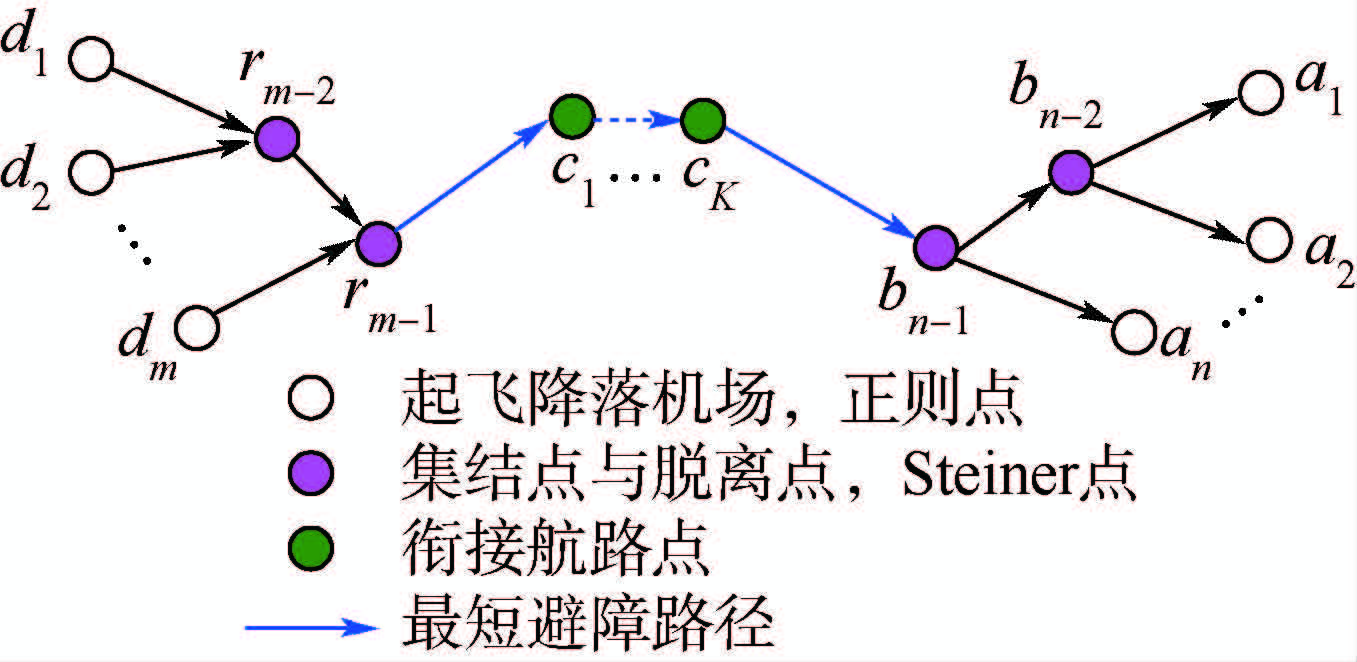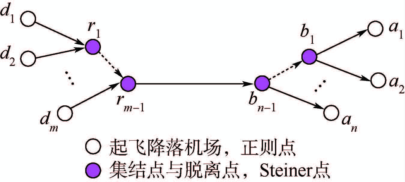② 存在Steiner点的度为2,表明某一机场为集结点或脱离点.