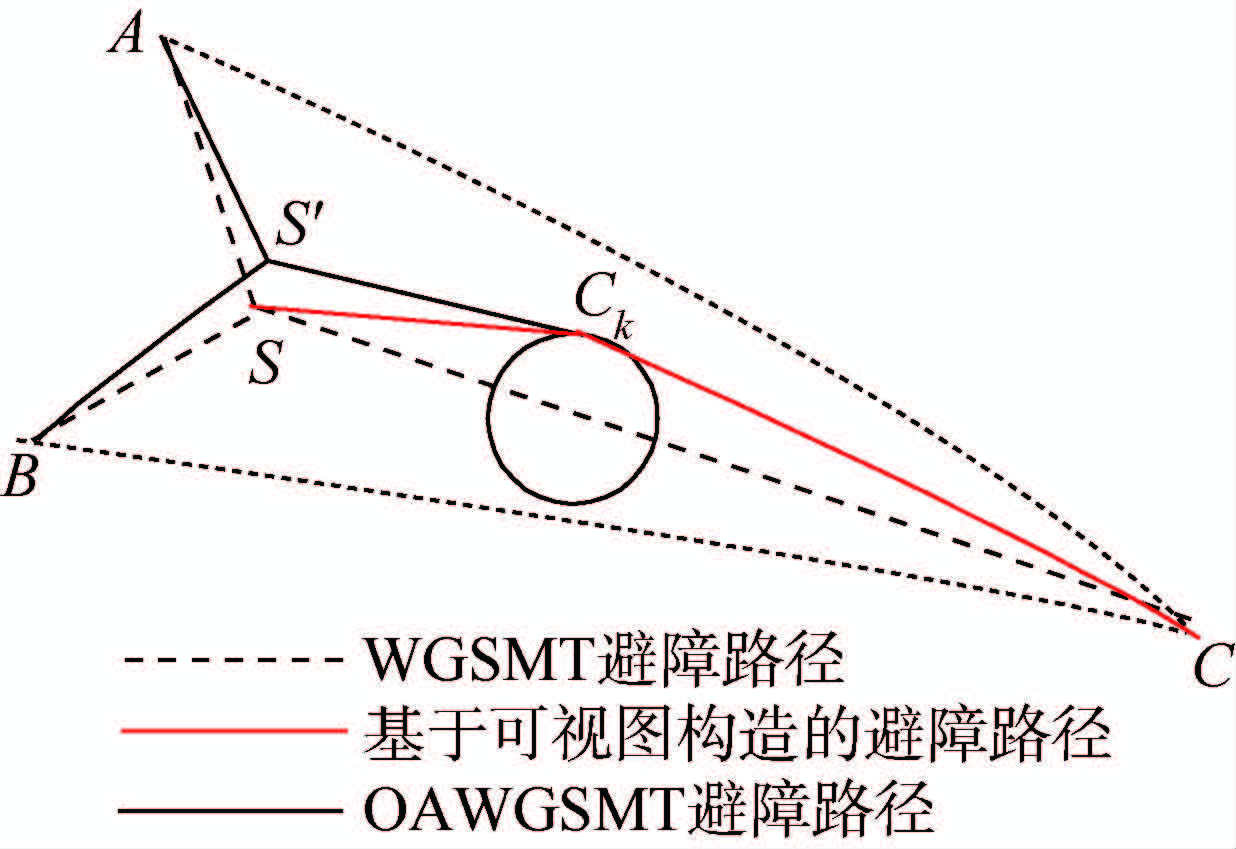 3) 针对OAWGSMT编队路径规划问题,证明了衔接点的引入仅改变紧邻的Steiner点的拓扑特征.