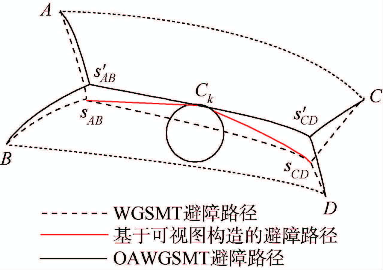 在离散球面空间上利用数值算法规划编队路径具有依赖于离散网格数量的复杂度,而几何方法的复杂度则仅依赖于节点规模.根据编队路径的拓扑特征,编队飞行路径规划问题可以被抽象为一个含动态网络流特征几何规划问题:OAWGSMT构造问题.考虑基于“构造-修复”思想的规划避障编队路径:利用WGSMT有限几何简化原则在球面点集上递归构造WGSMT编队路径;利用可视图方法及WGSMT有限几何简化原则修复WGSMT编队路径得到OAWGSMT编队路径.